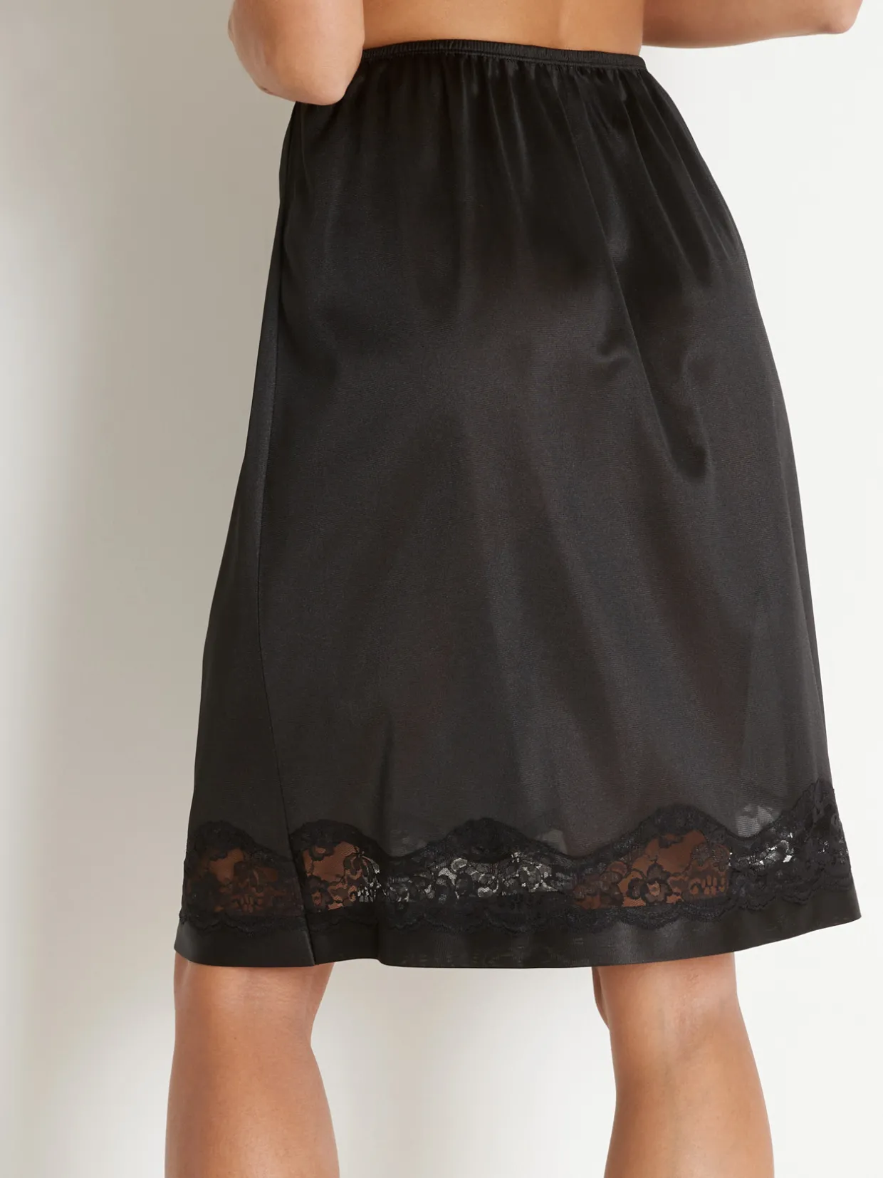 Taille élastiquée. Base ourlée n’accrochant pas les collants.