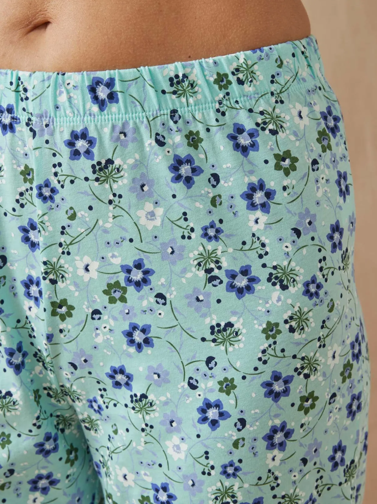 Un pyjacourt sous le signe de la douceur grâce à une maille jersey tout coton et un imprimé vert d’eau très frais. Une pièce phare de votre lingerie de nuit estivale !