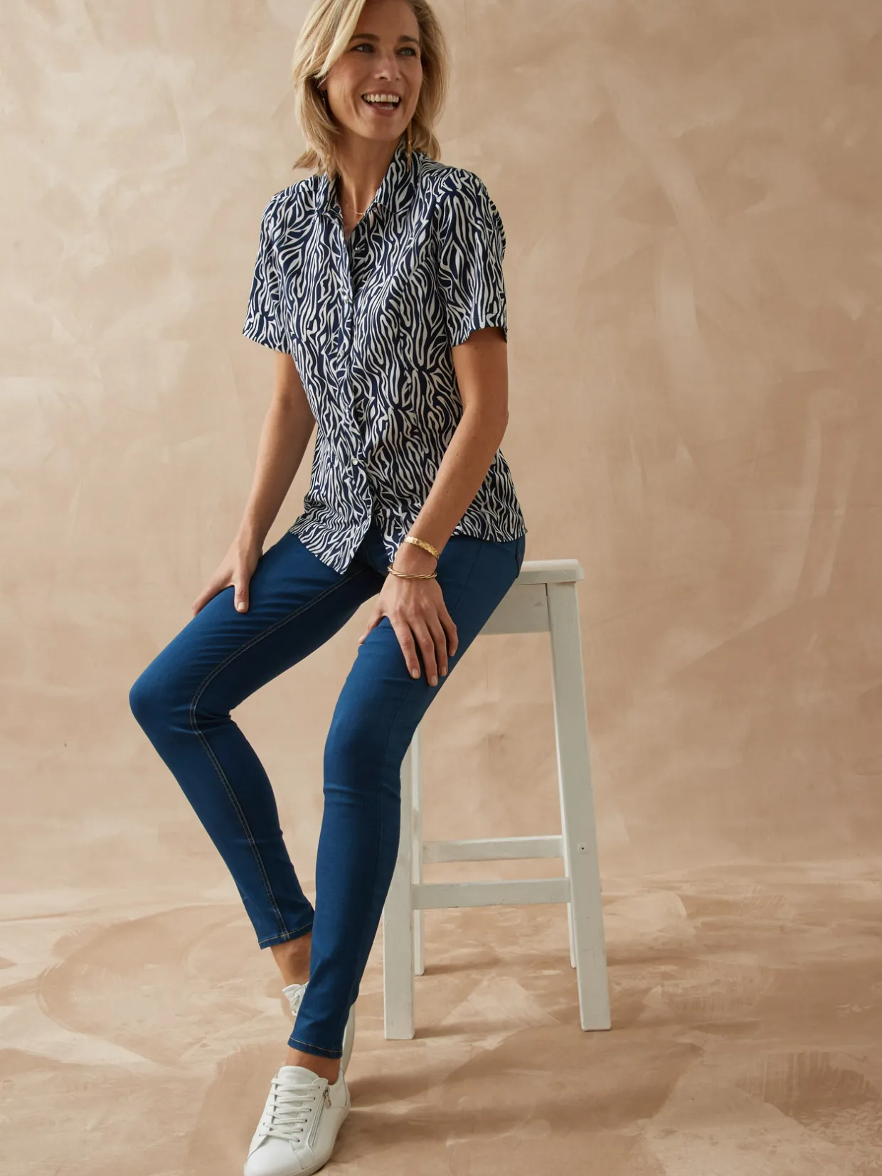 Un petit chemisier manches courtes à la coupe classique et à l’imprimé très stylé. Son tissu fluide en fait une petite pièce du dressing facile à entretenir et agréable à porter.