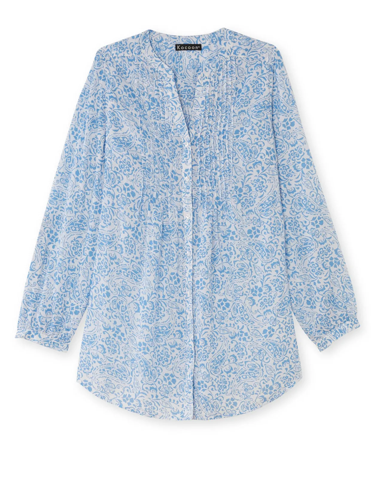 Un chemisier tunique imprimé, à porter ceinturé ou non. Son tissu viscose est agrablement fluide. Un chemisier long à ajouter à la shopping-liste !