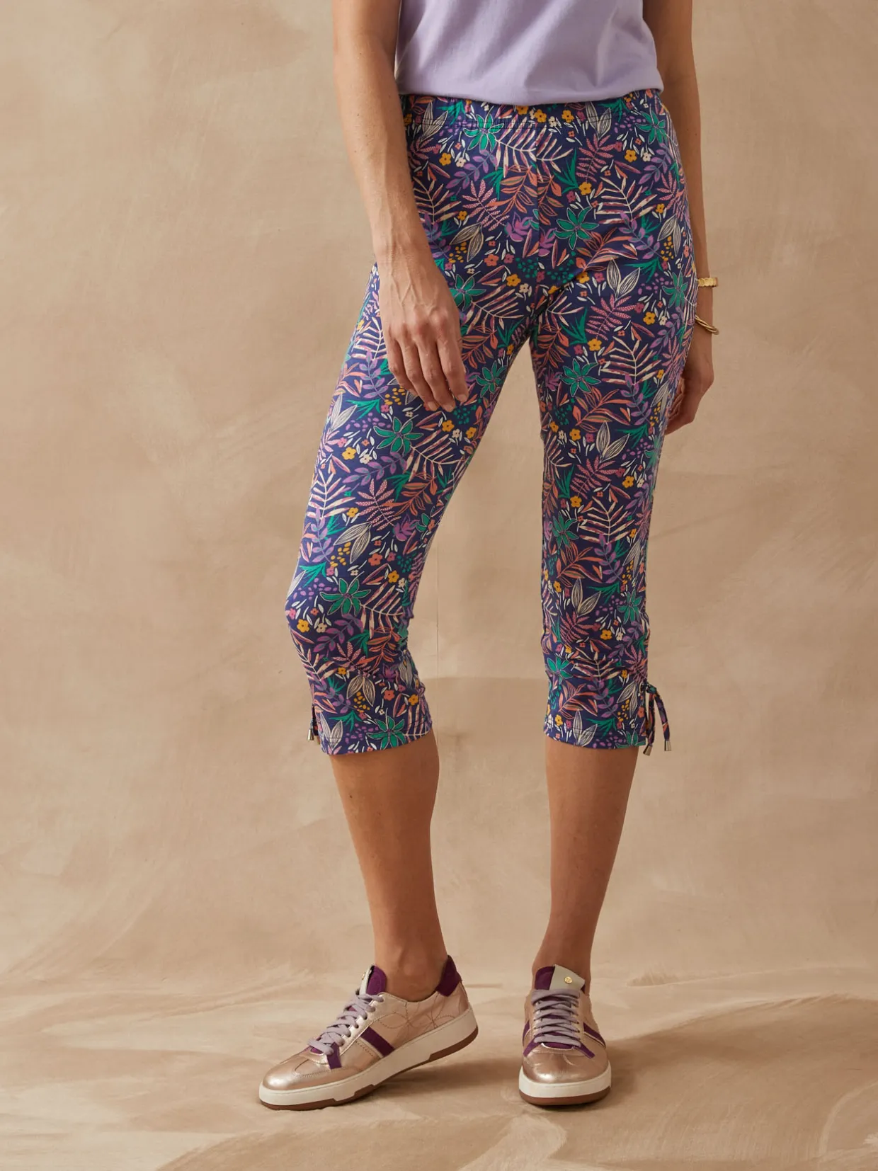 Le corsaire à lacets : un indispensable de l’été qui s’associe avec tout ! On aime sa fantaisie de nouette sur gros oeillets argentés au bas des jambes et son imprimé très sympa.
