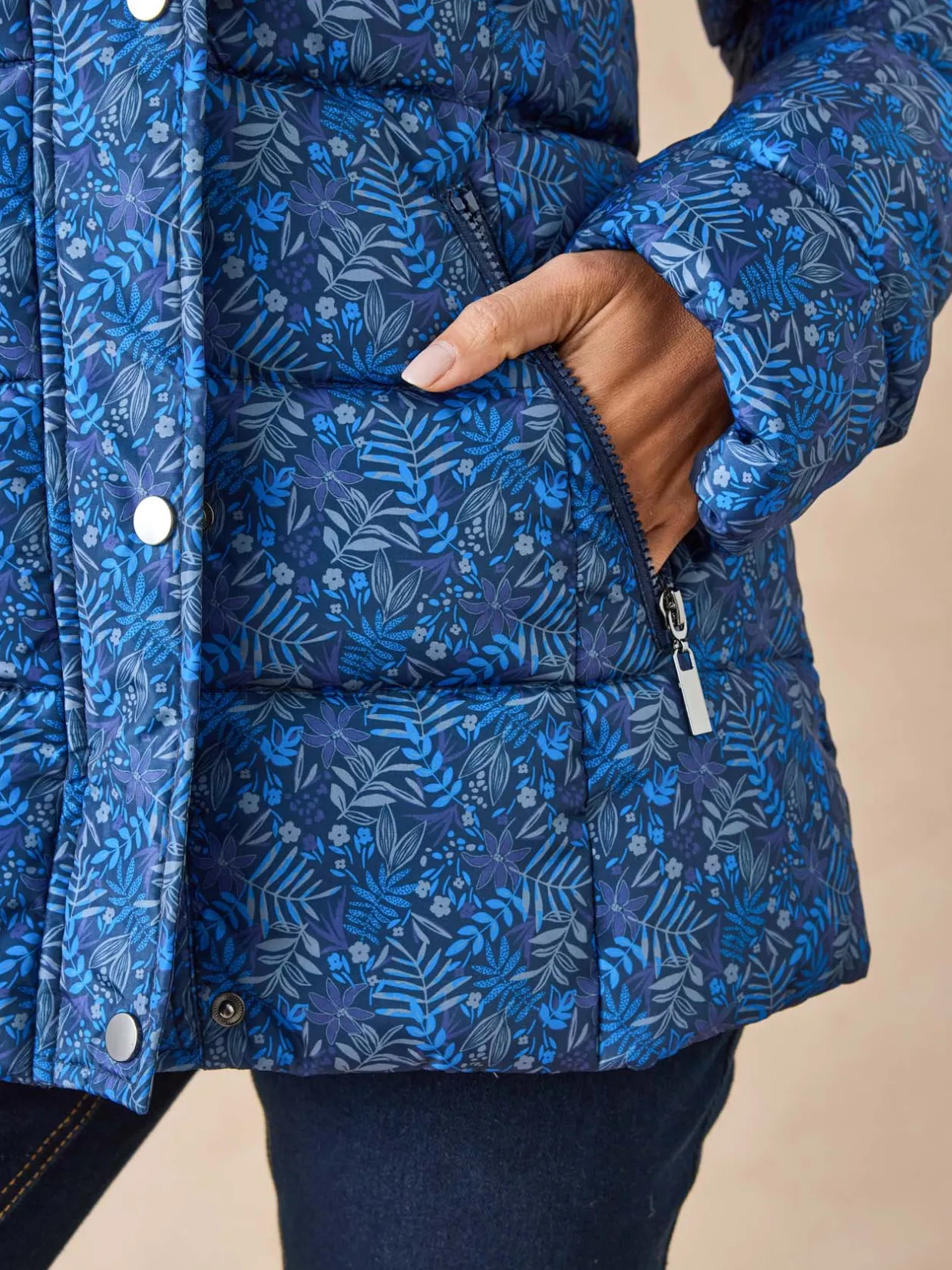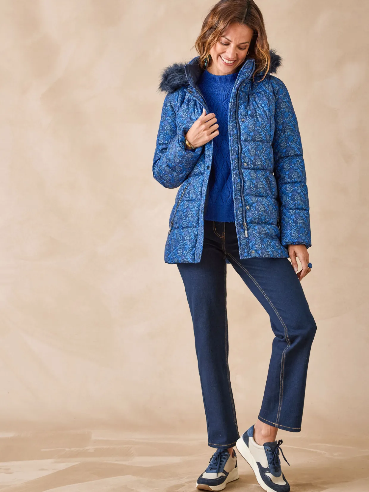 Cette parka imprimée femme est conçue pour s’adapter à toutes les morphologies : petites et grandes tailles.