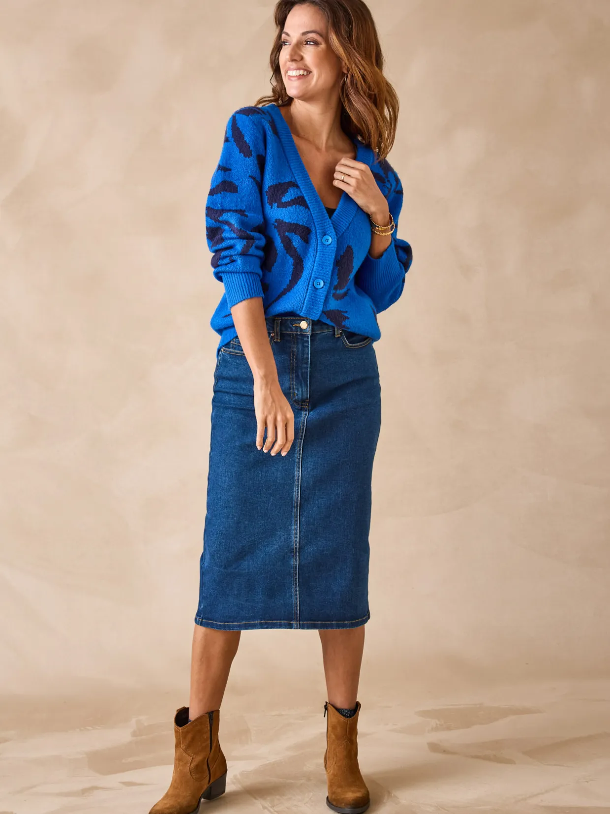 Une jolie tonalité de bleu pour ce gilet jacquard. On glisse dessous une jolie blouse ou un tee-shirt uni, on ajoute un pantalon, une petite jupe ou un jean : voilà une tenue toute trouvée !