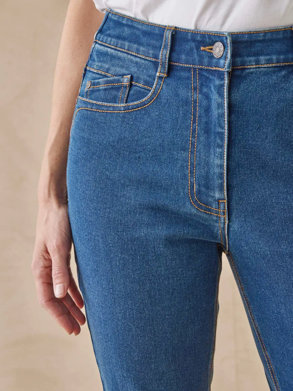 Ce jean longueur cheville est conçu pour s’adapter à toutes les morphologies : petites et grandes tailles.