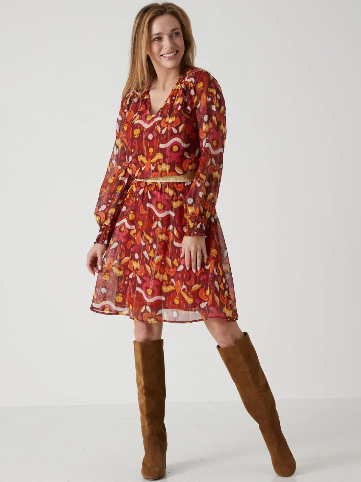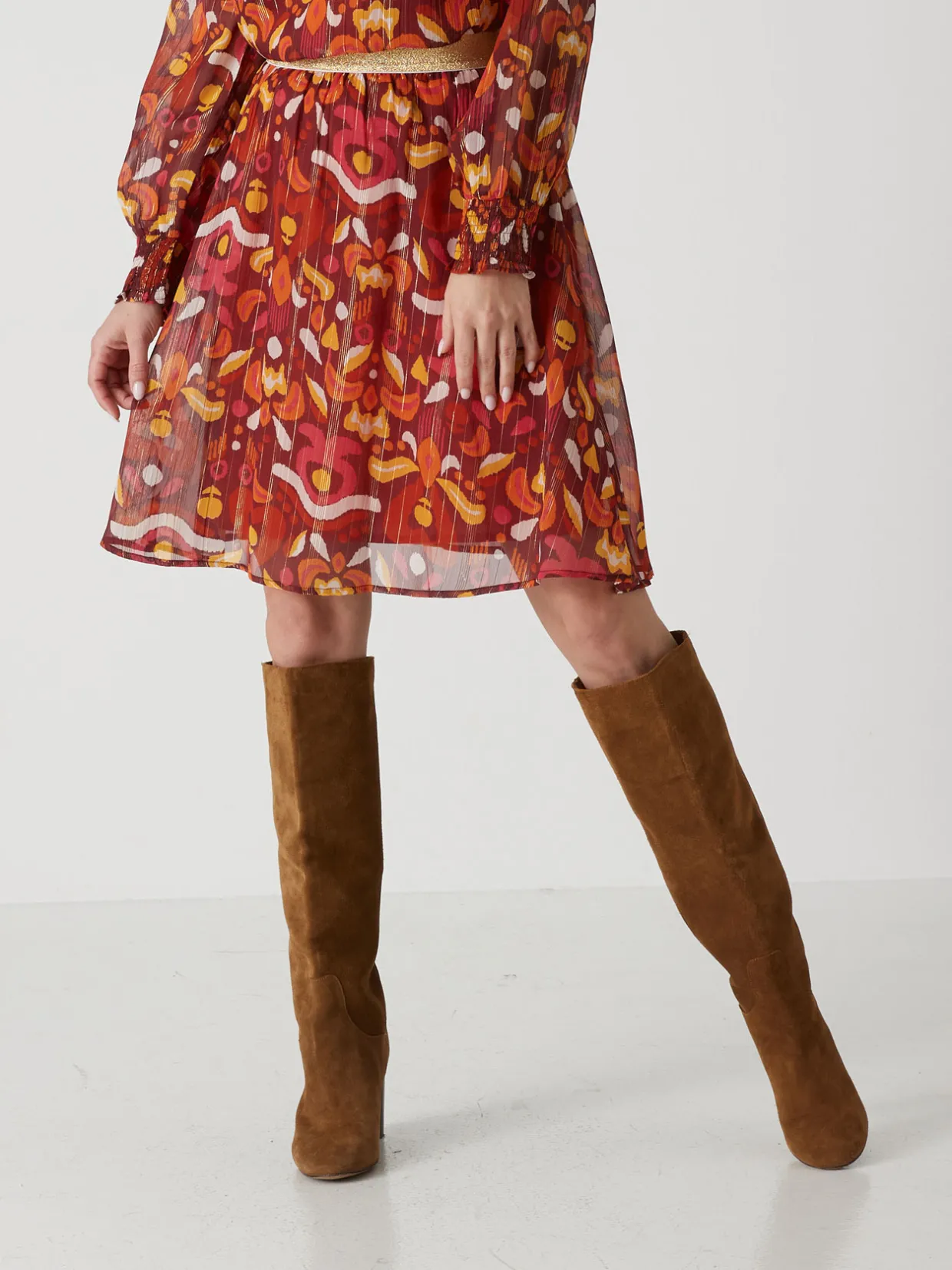 Nuances turquoise ou tonalités orangées… le plus difficile est de choisir entre les 2 imprimés de cette jupe courte. Sa longueur est parfaite pour faire danser joliment la silhouette !