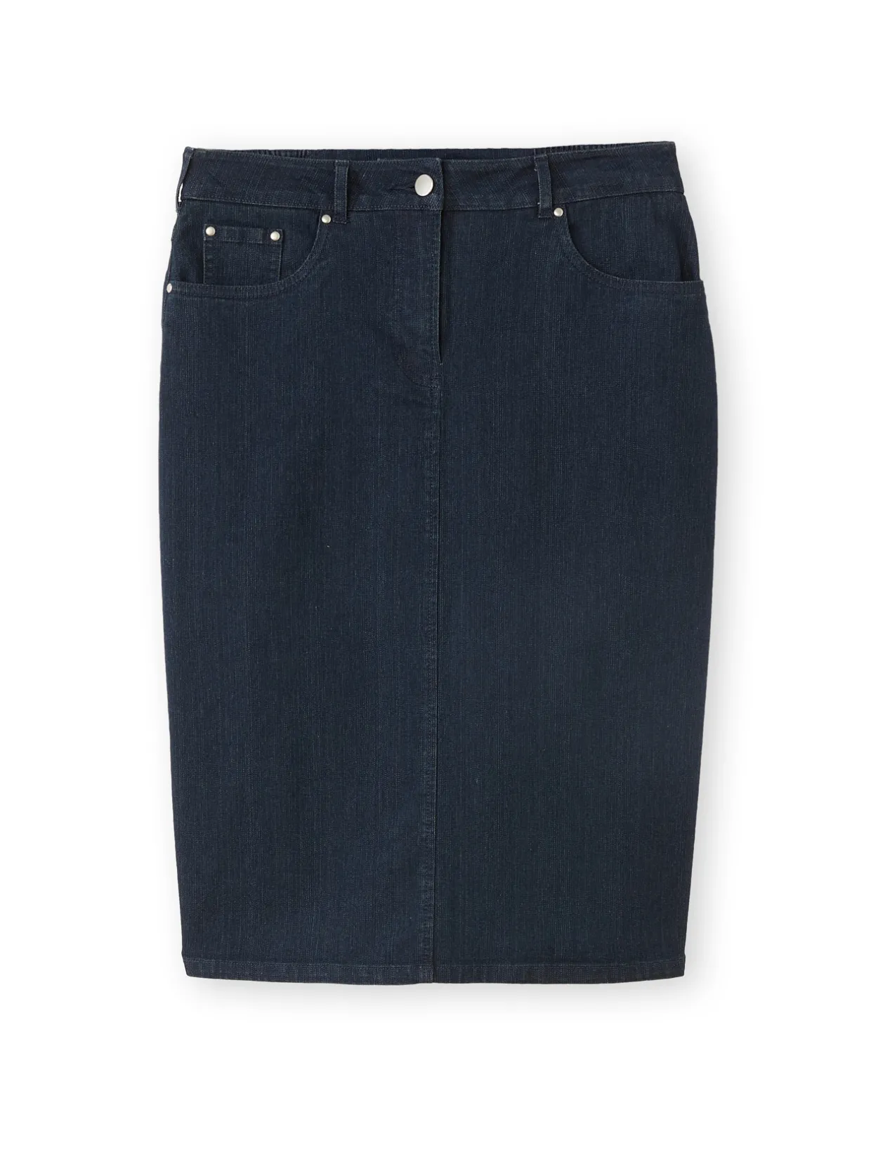 Cette jupe droite femme est conçue pour s’adapter à toutes les morphologies : petites et grandes tailles.