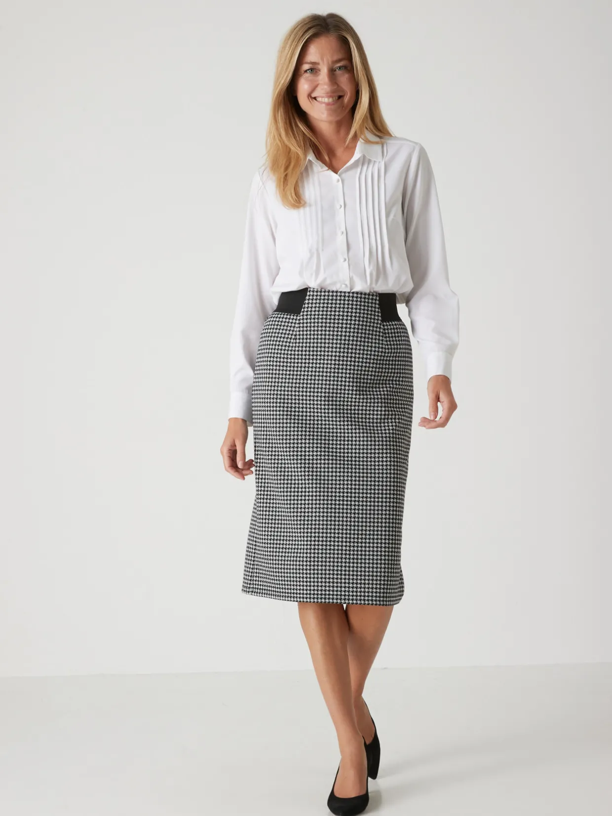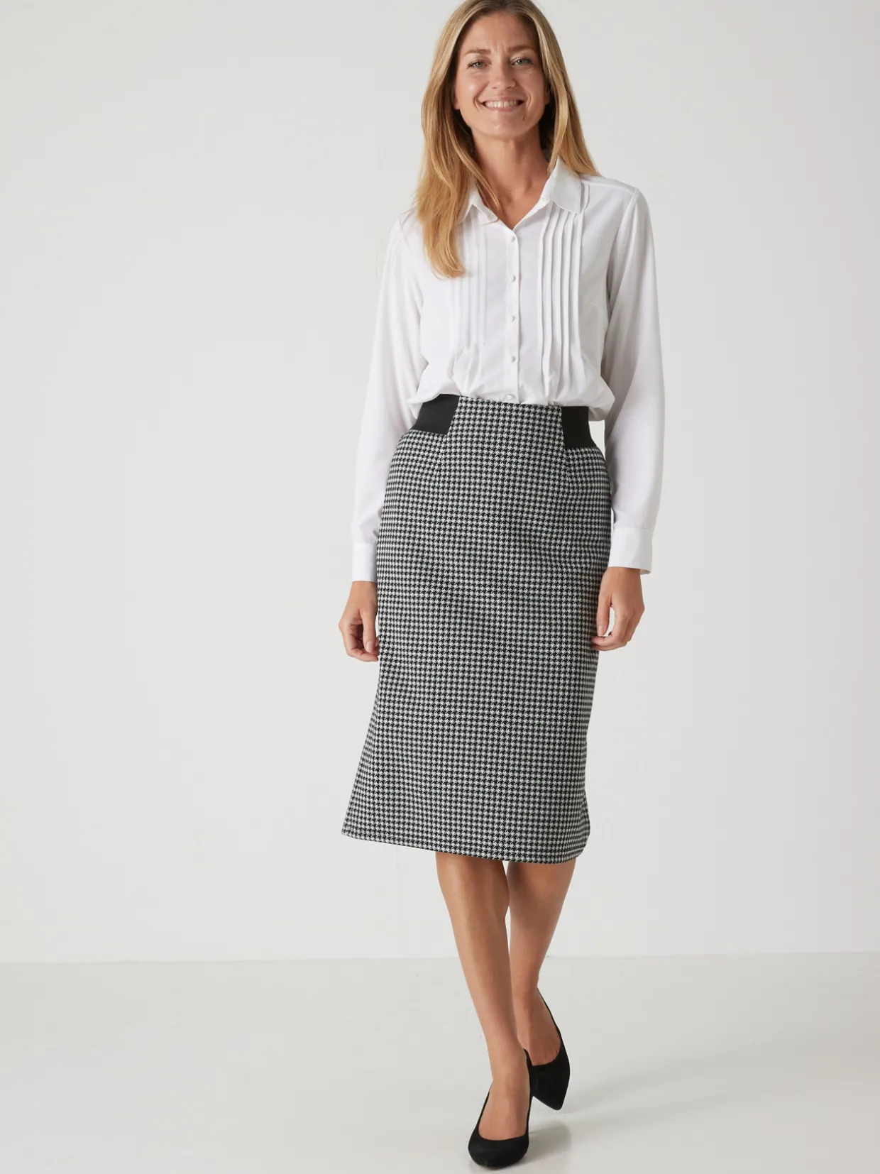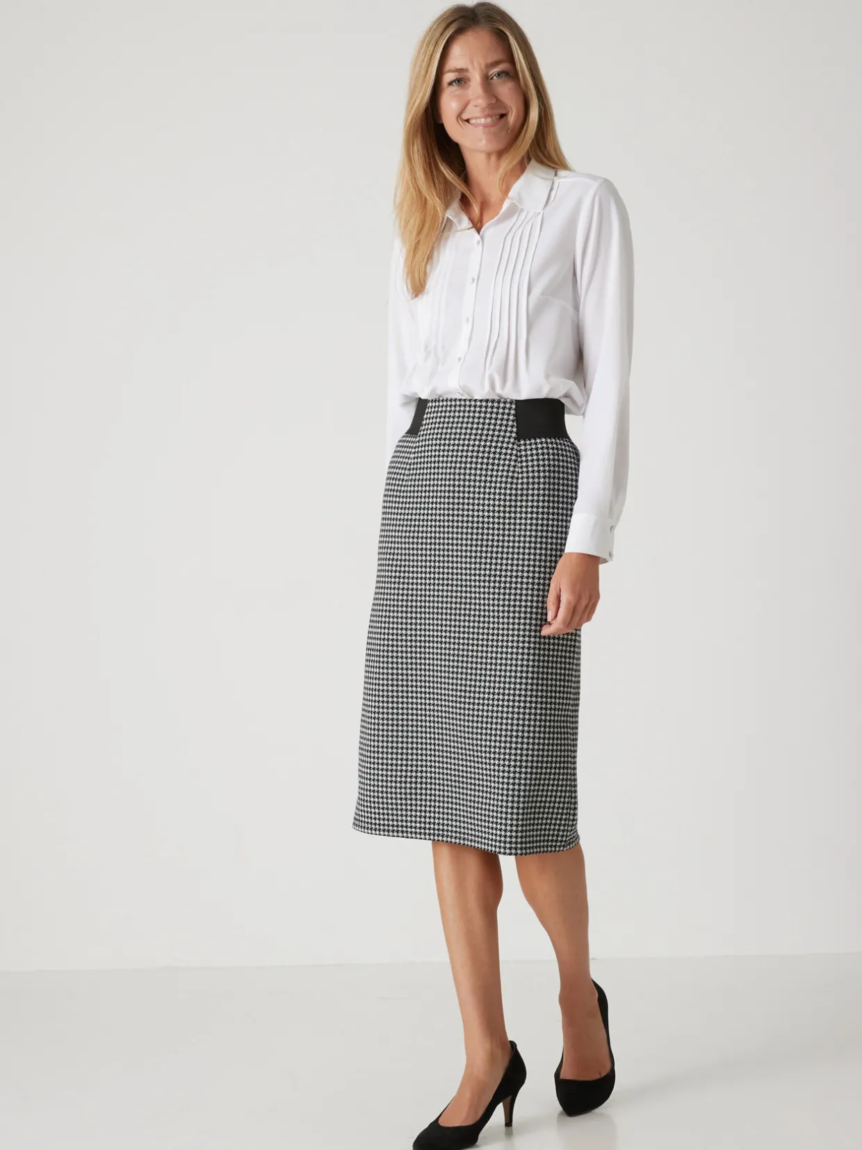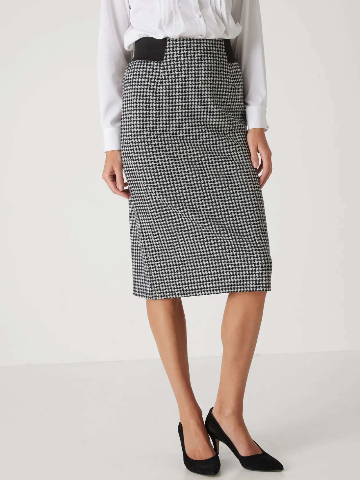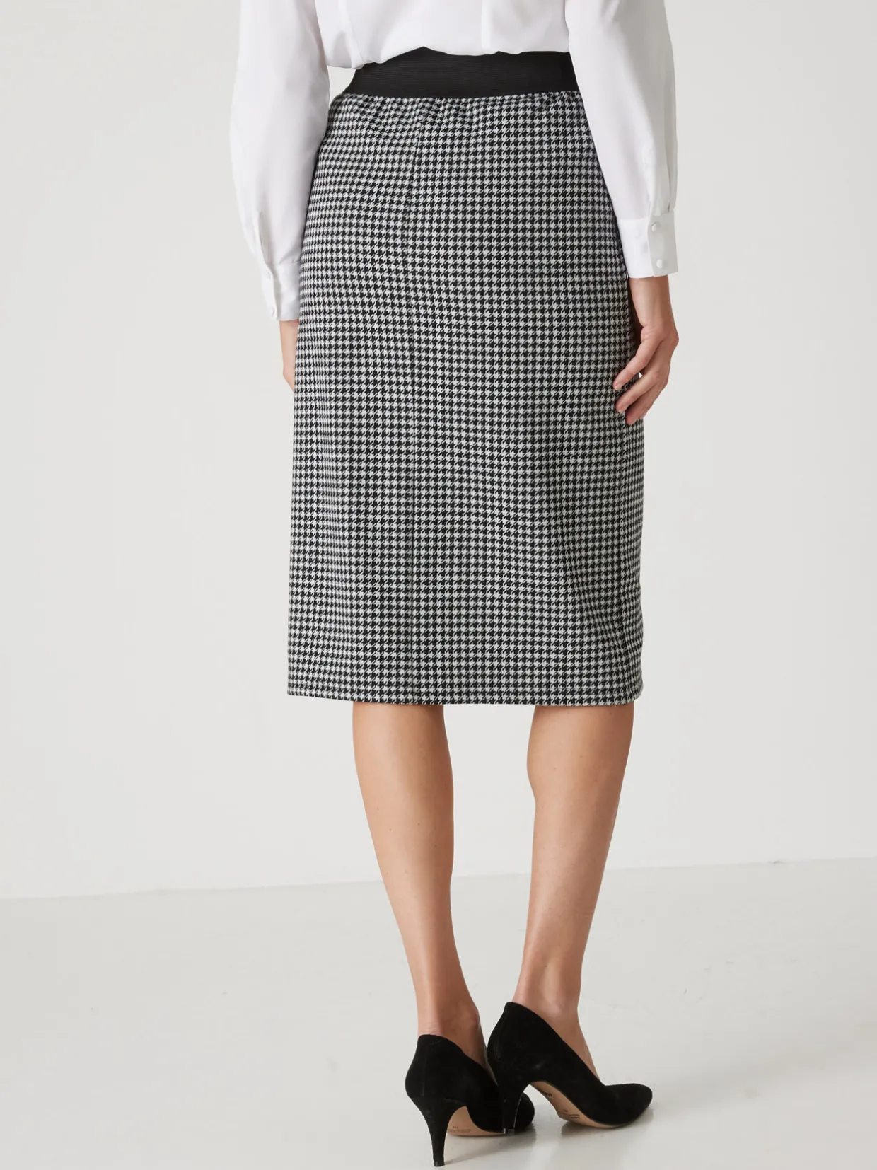 Toujours élégante, la jupe droite… Celle-ci s’adapte souplement à la taille grâce à un large élastique sur les côtés et au dos. Style et confort : le combo parfait ! Et cerise sur le gâteau : une maille milano très agréable à vivre.