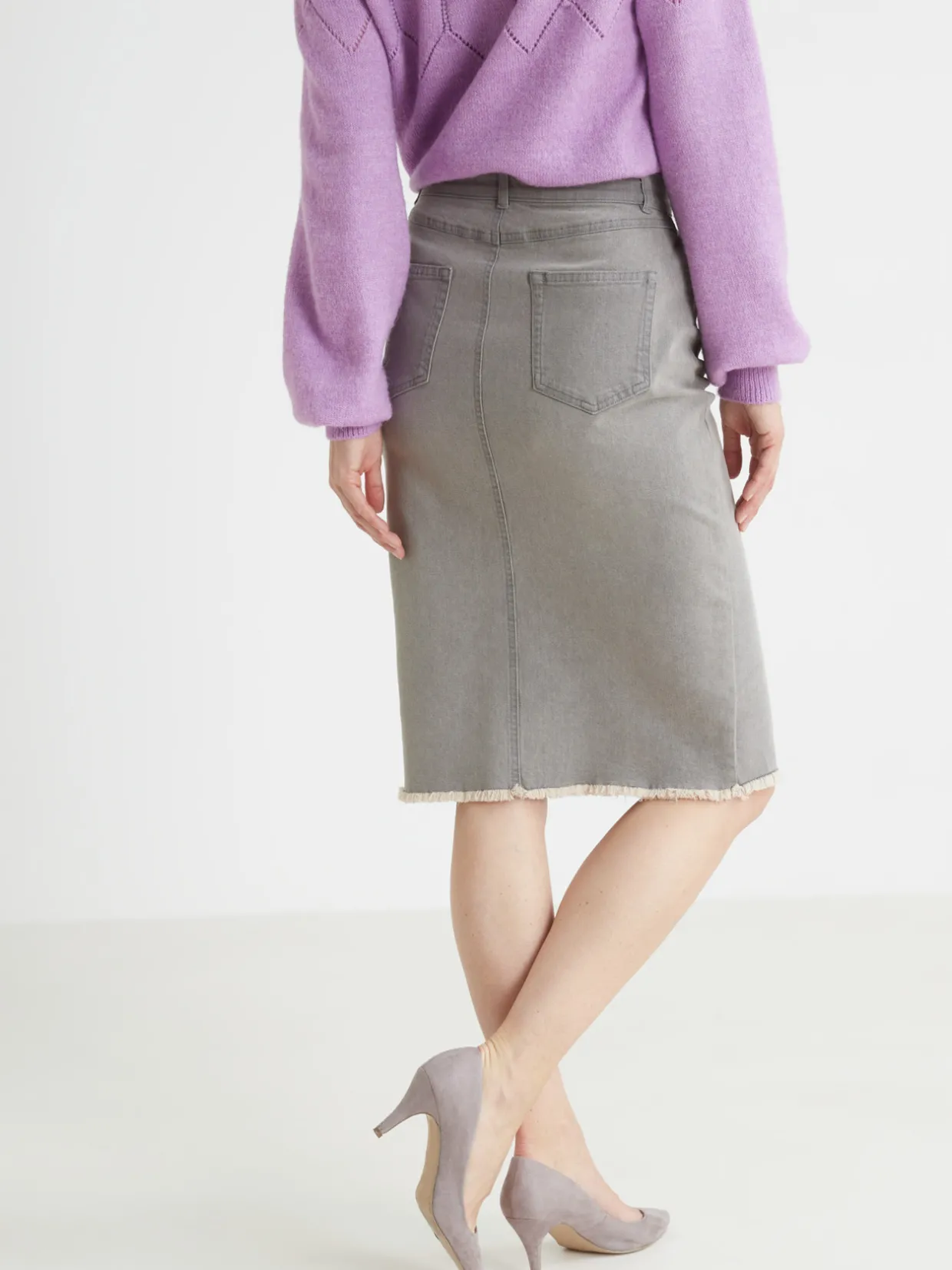 Une jupe en jean qui se distingue par un bord frangé : un détail très sympa ! En denim extensible, avec sa coupe droite, cette jupe élastiquée est une pièce phare du dressing.