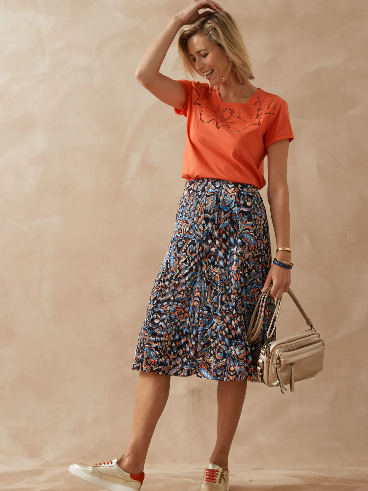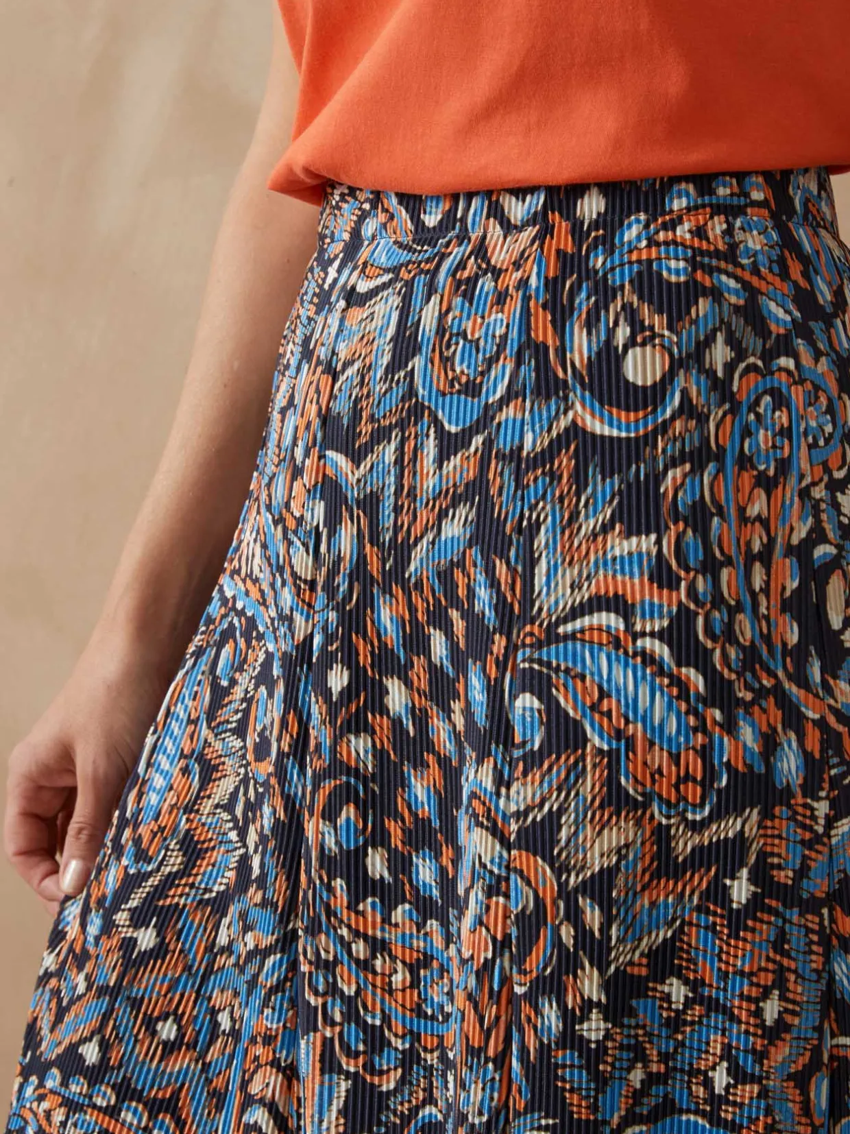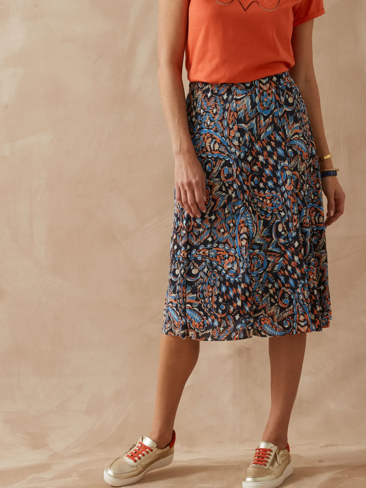 Un très bel imprimé qui fait mouche sur le plissé permanent de cette jupe ! Elastiquée pour le confort, évasée pour la féminité, et ne nécessitant pas de repassage pour le côté pratique… Juste parfaite !