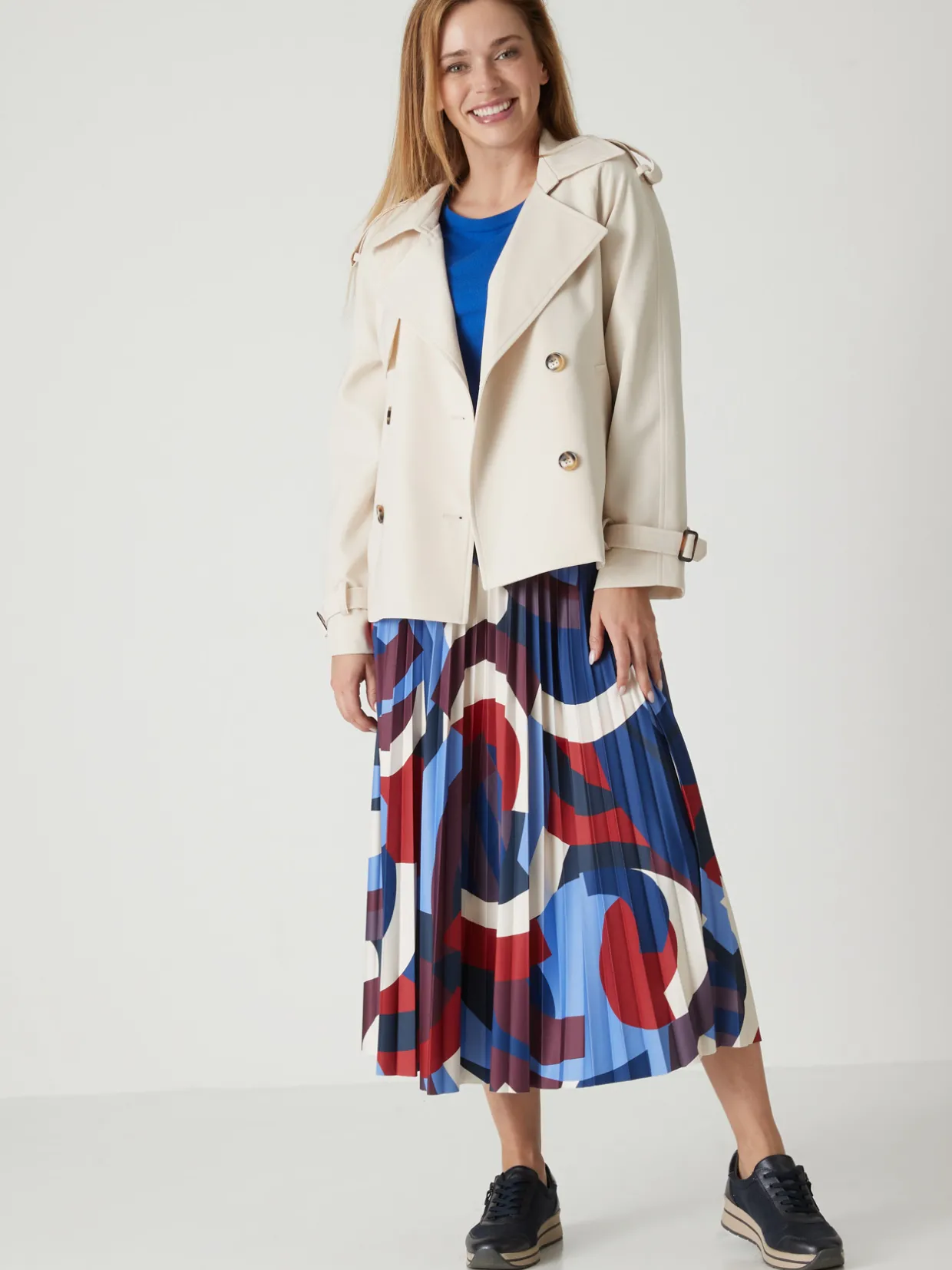 Toujours très stylée, la jupe plissée soleil et ultra confortable grâce à une ceinture entièrement élastiquée sous tunnel.