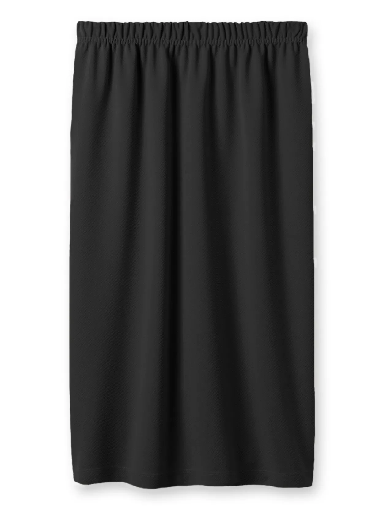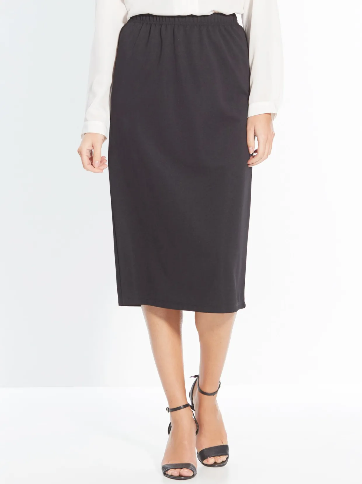 Taille entièrement élastiquée. Fente au dos. Ourlet invisible.