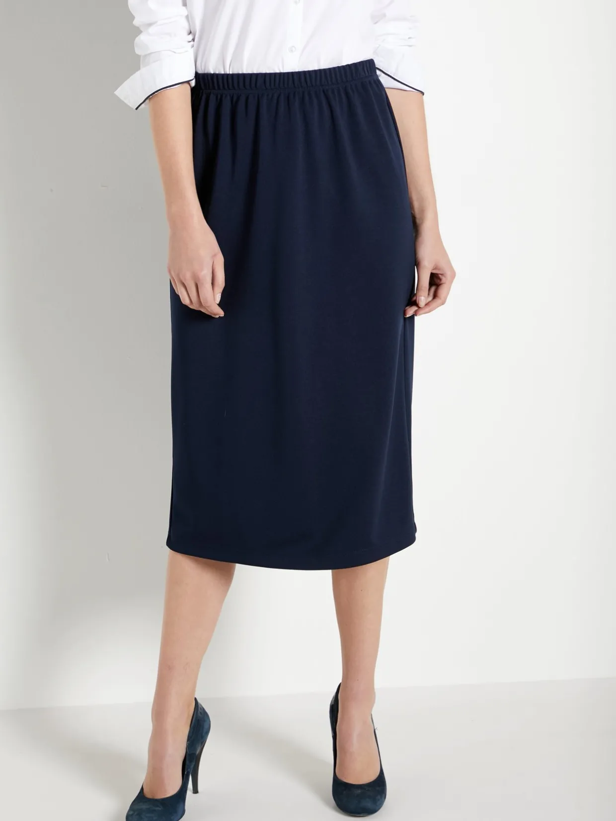 Taille entièrement élastiquée. Fente au dos. Ourlet invisible.