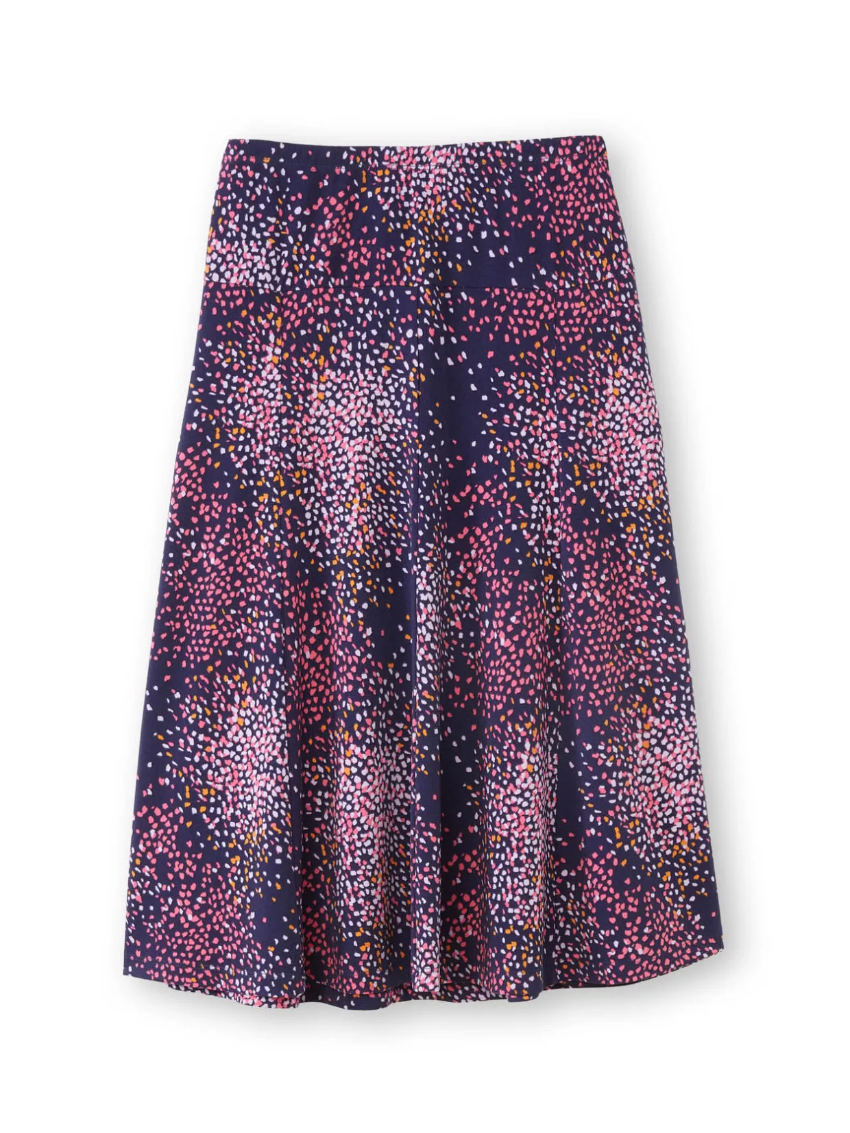 Ceinture entièrement élastiquée. 8 panneaux pour une belle ampleur.