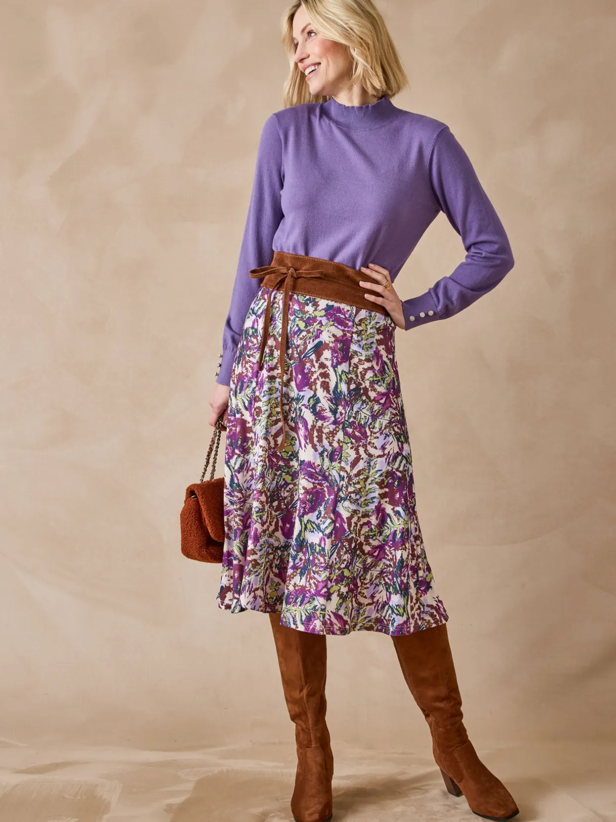 Une maille douce, un bel imprimé, une ceinture élastiquée… autant d’atouts qui nous font craquer pour cette jupe évasée. Avec un pull, elle compose une tenue parfaite. Vous pourrez aussi l’associer à un joli chemisier uni : sa ceinture est plate devant, pour éviter les surépaisseurs, votre allure est impeccable.