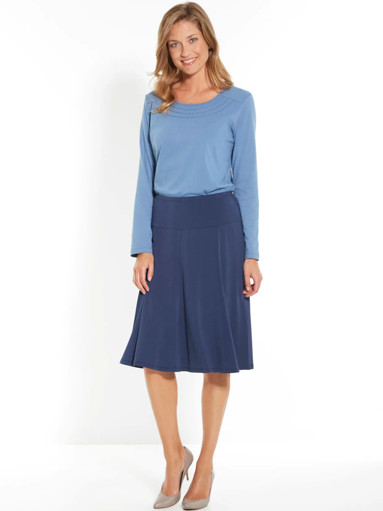 Une jupe qui suit vos mouvements avec beaucoup d’élégance. Vous l’associerez facilement à vos tee-shirts, blouses et pour les plus frileuses à un joli pull !