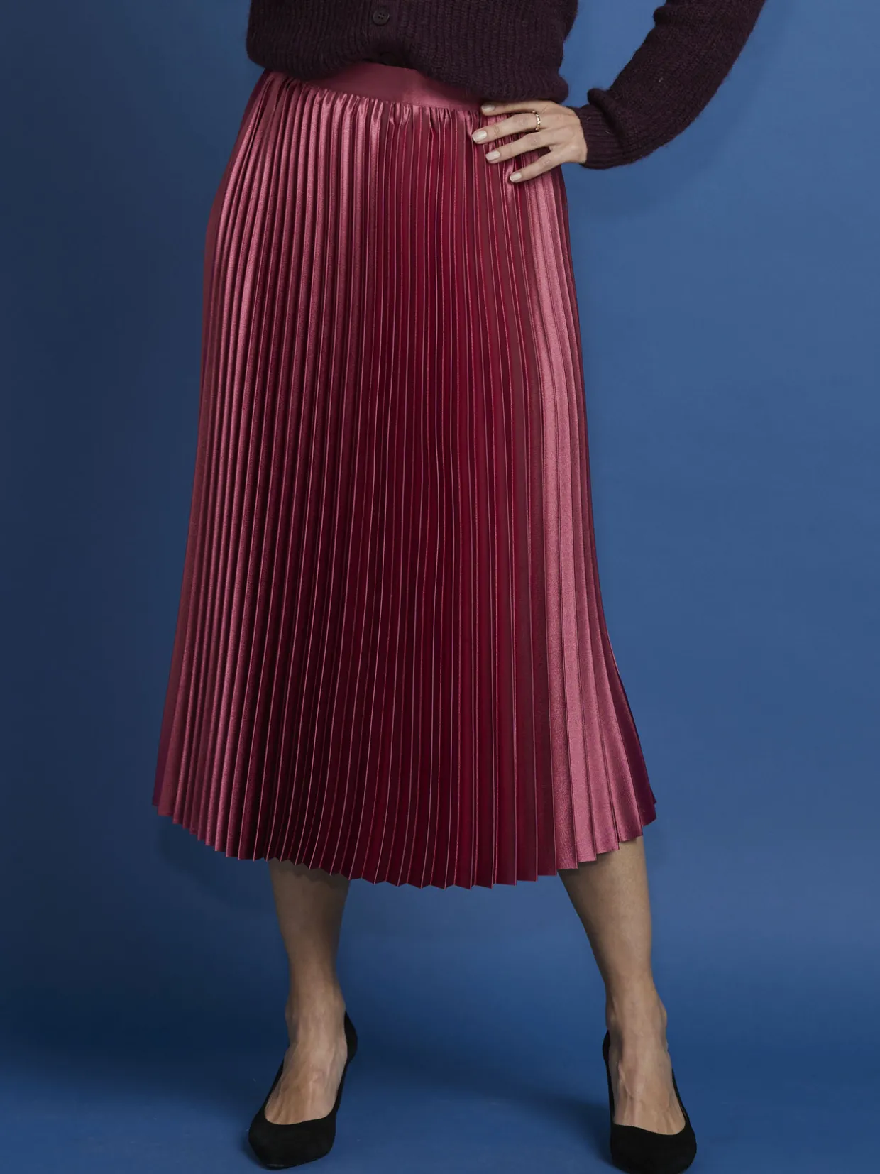 Cette jupe plissée femme est conçue pour s’adapter à toutes les morphologies : petites et grandes tailles.