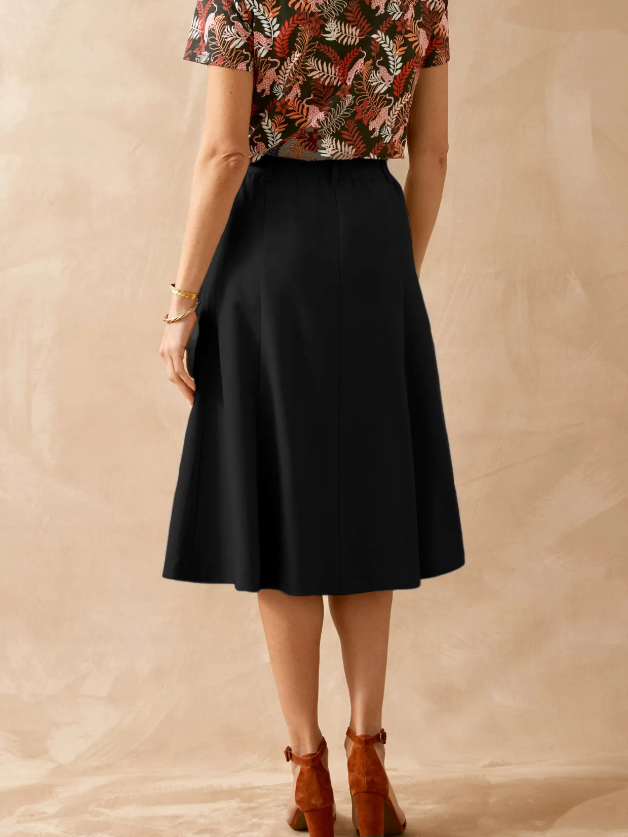 Alliez l’élégance d’une coupe évasée au confort absolu. Cette jupe mi-longue à panneaux offre un tomber fluide et une silhouette structurée, parfaite pour toutes les occasions. Son coloris uni en fait une pièce facile à coordonner avec vos hauts préférés.