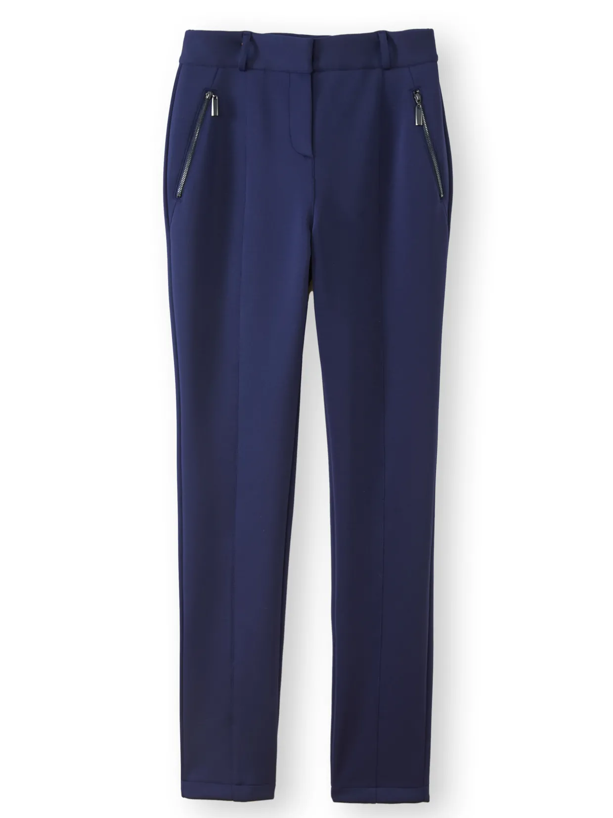 Ce pantalon marine femme est conçu pour s’adapter à toutes les morphologies : petites et grandes tailles.