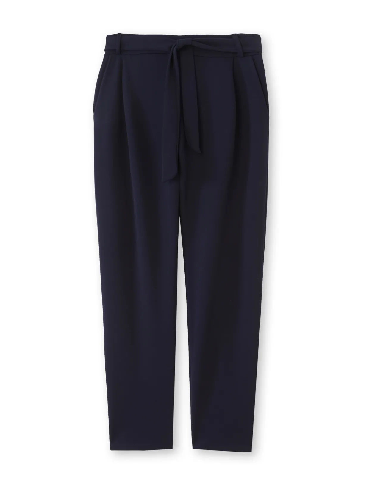 Une ceinture à nouer, sous larges passants complète le look de ce pantalon uni.