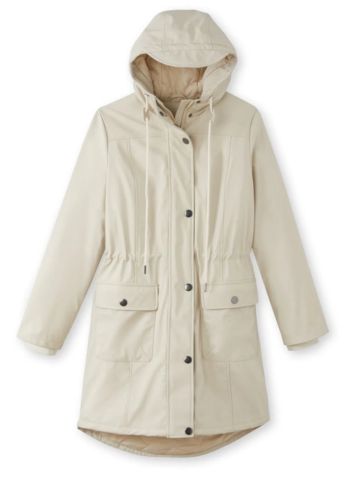 – Capuche munie d’une visière et cordons de serrage