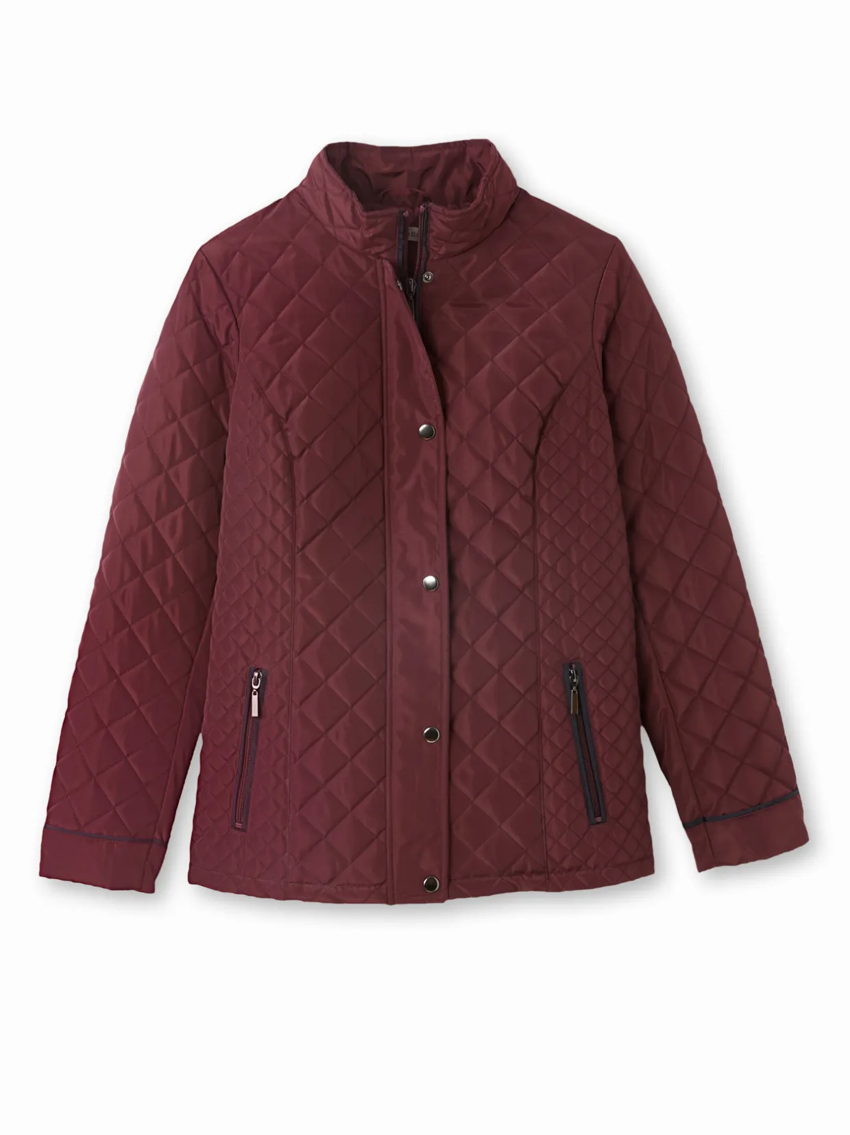 Fermée par zip sous patte pressionnée jusqu’en haut du col montant. Découpes princesse surpiquées devant et dos. Poches en biais passepoilées zippées. Manches longues. Finitions passepoil contrastant.