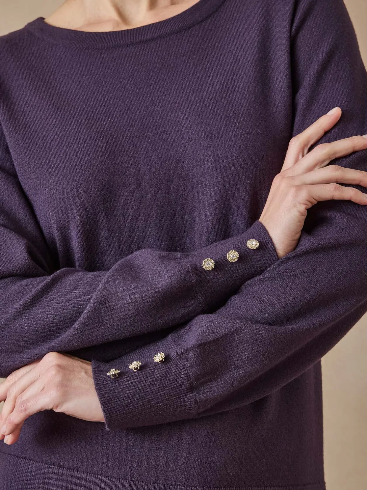 Le pull uni col rond est une valeur sûre du dressing. De jolis boutons-bijoux au bas des manches lui apportent du chic et de l’élégance ! Il vous sera facile d’associer ce pull classique à tous vos pantalons et jupes.