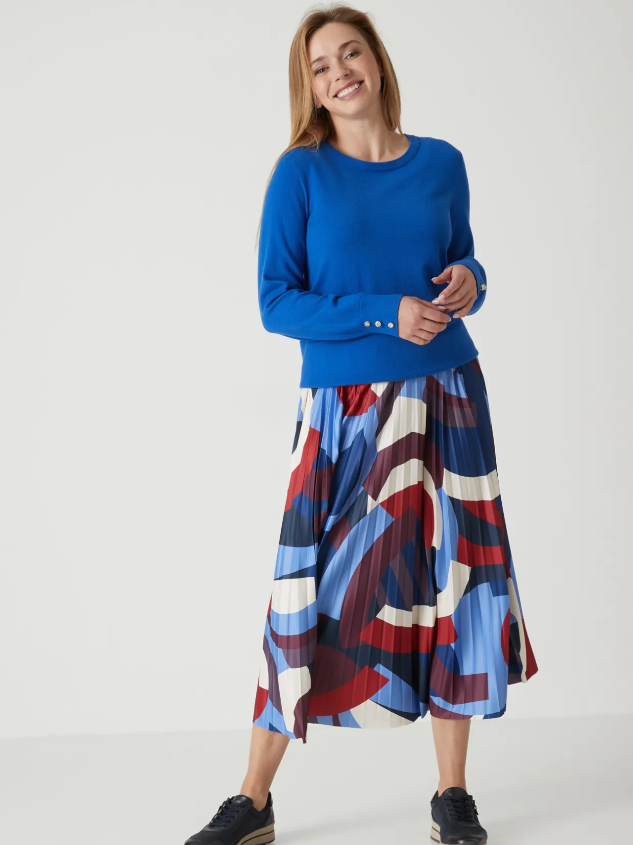 Le pull uni col rond est une valeur sûre du dressing. De jolis boutons-bijoux au bas des manches lui apportent du chic et de l’élégance ! Il vous sera facile d’associer ce pull classique à tous vos pantalons et jupes.
