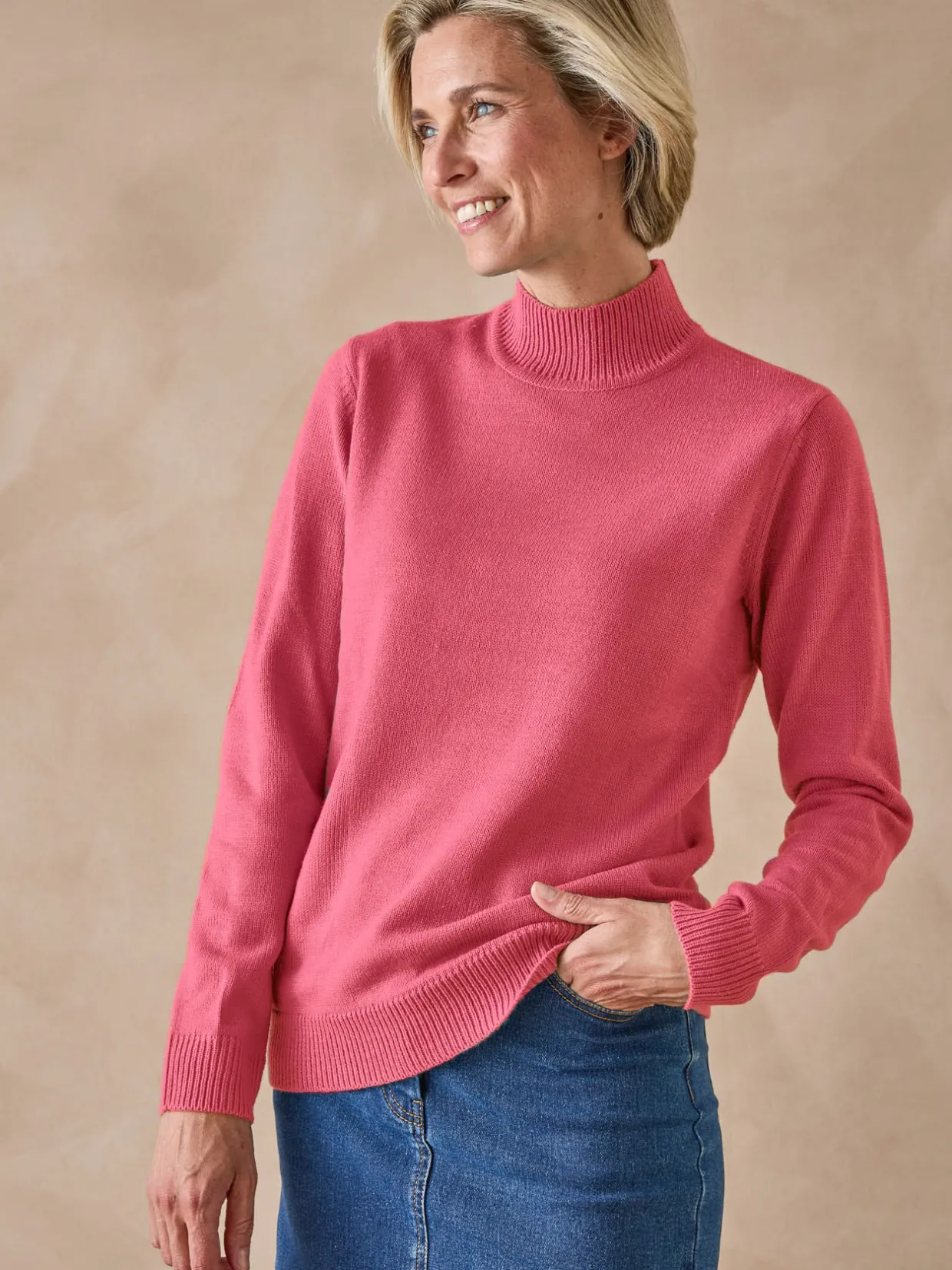Col montant. Manches longues. Finitions bords-côtes.