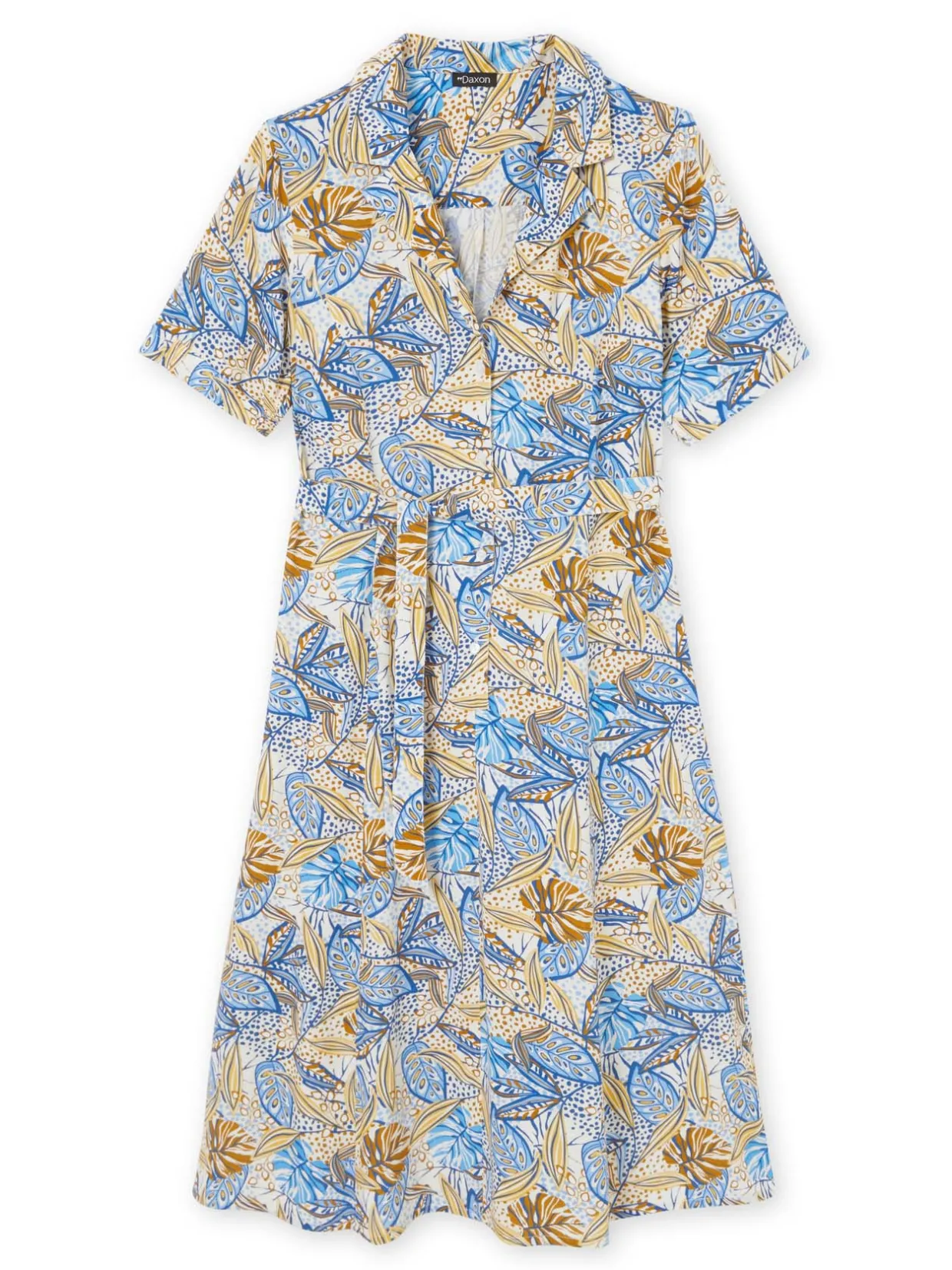Cette robe imprimée est conçue pour s’adapter à toutes les morphologies : petites et grandes tailles.