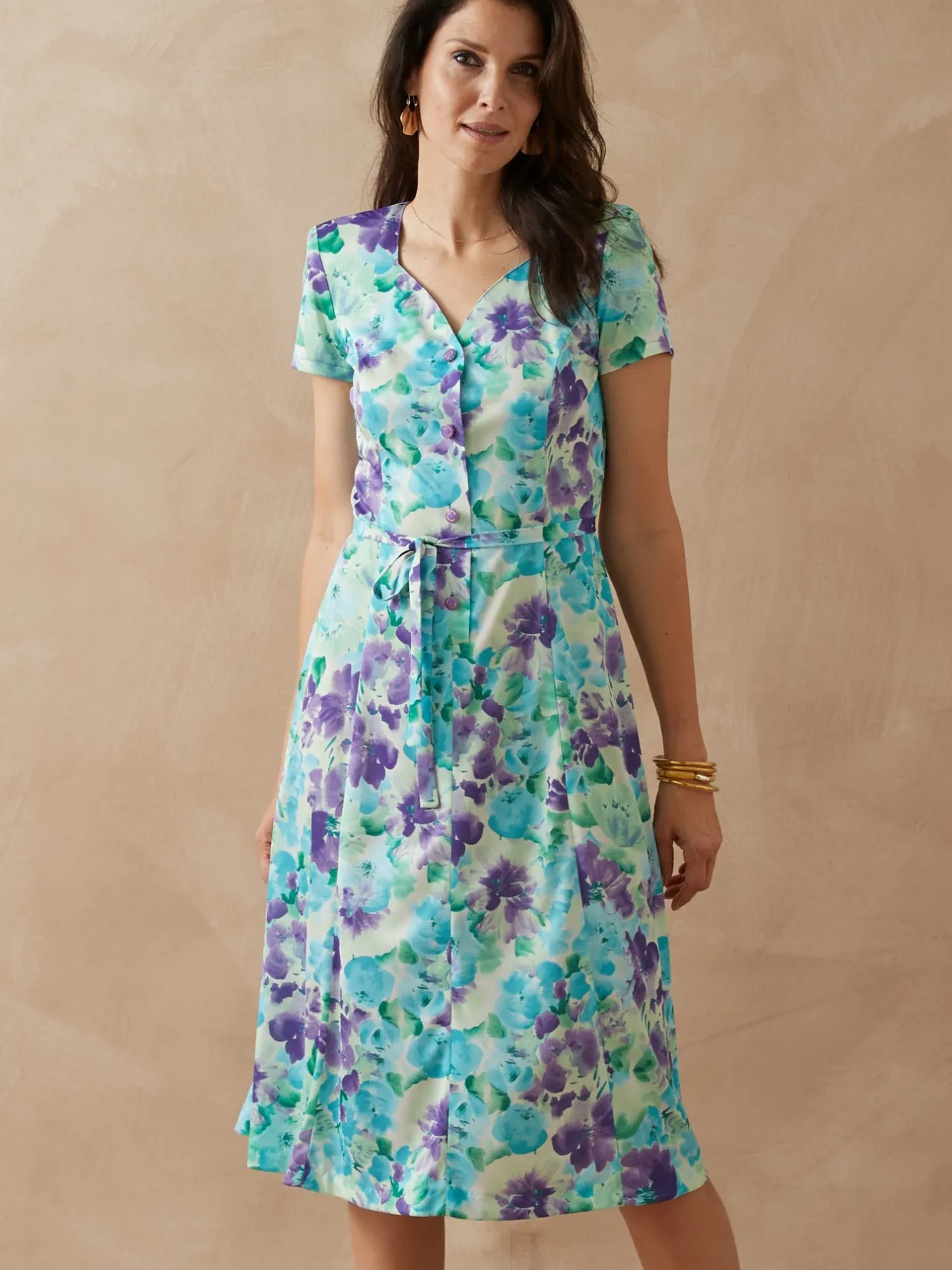 Toute boutonnée, toute fleurie, on aime le style délicieusement estival de cette robe trapèze…