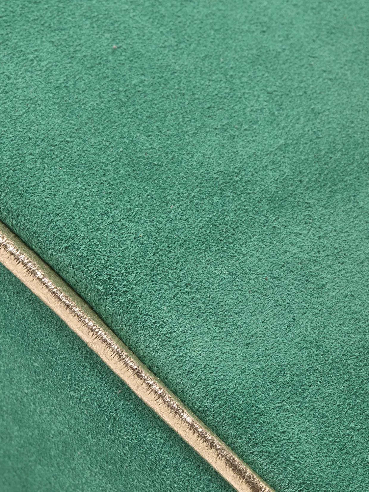 Un joli coloris printanier pour ce sac en cuir bordé d’un biais doré (le petit supplément tendance). Et si c’était lui le chouchou de notre été ?