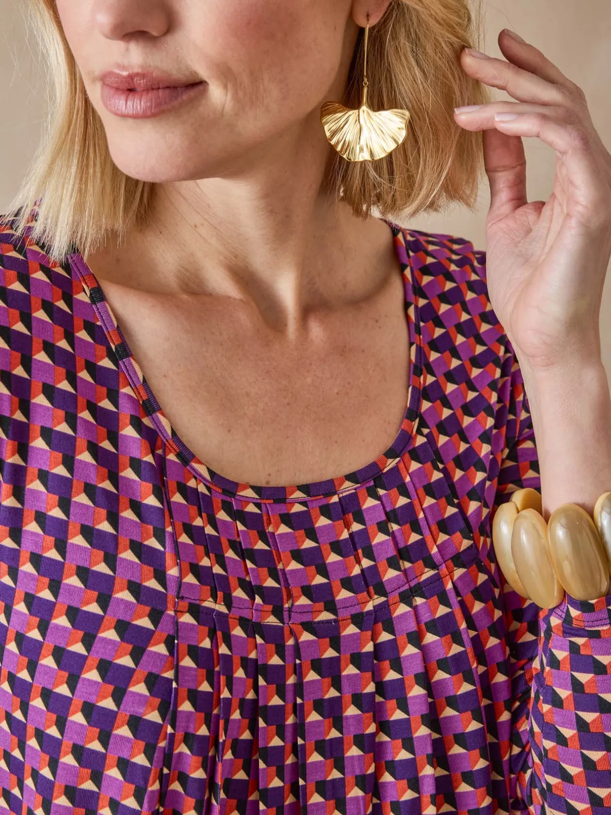 Vous apprécierez l’empiècement devant avec plis de ce tee-shirt tunique imprimé et ses fentes côtés qui, outre l’aspect stylé, vous garantissent une agréable ampleur…