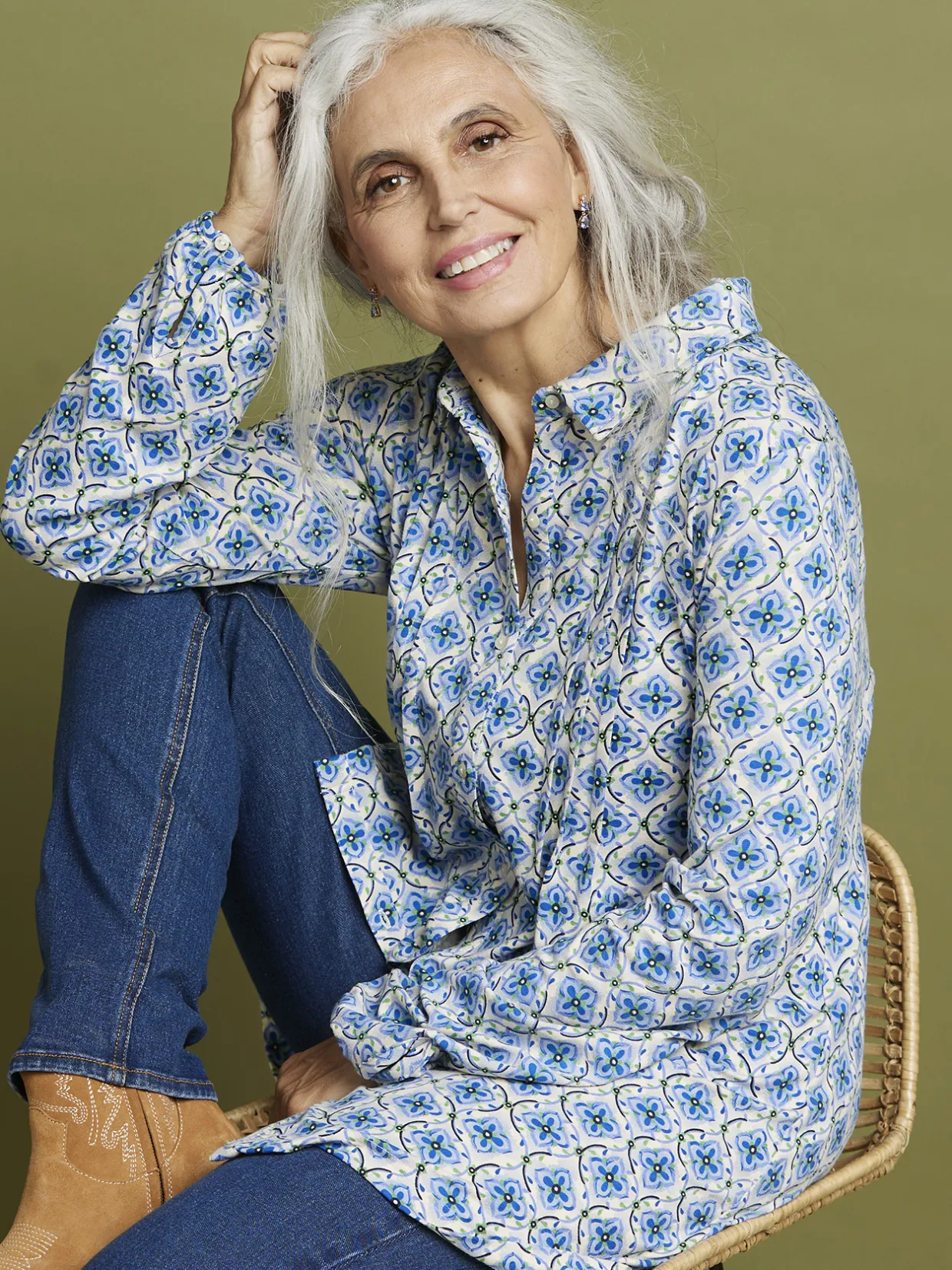 Cette tunique ample est conçue pour s’adapter à toutes les silhouettes : petites et grandes tailles.