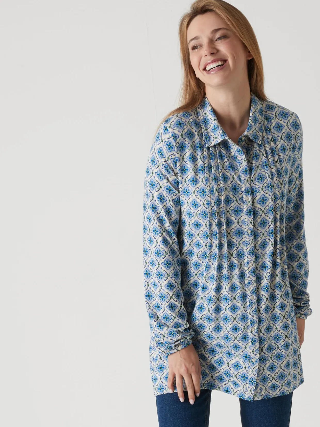 Une ampleur flatteuse et agréable pour cette tunique en jersey fluide. Elle met du pep’s dans la saison grâce à son superbe imprimé. Avec un jean ou un pantalon droit uni, cette tunique sera parfaite.