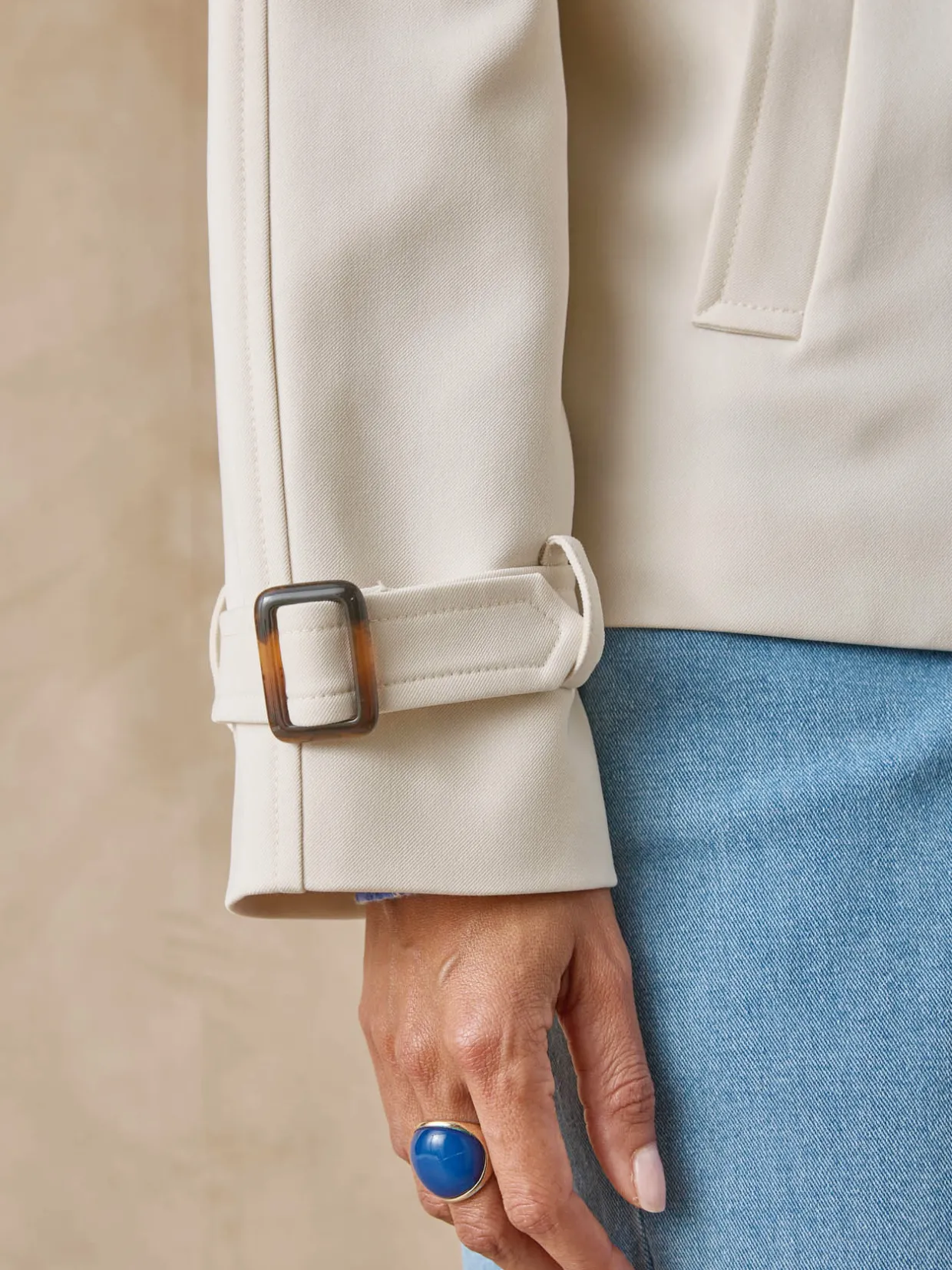 L’esprit trench revisité en version court avec cette veste écrue, idéale à la mi-saison ou pour les journées fraîches de la belle saison. On aime ses finitions soignées et son allure féminine et tendance.