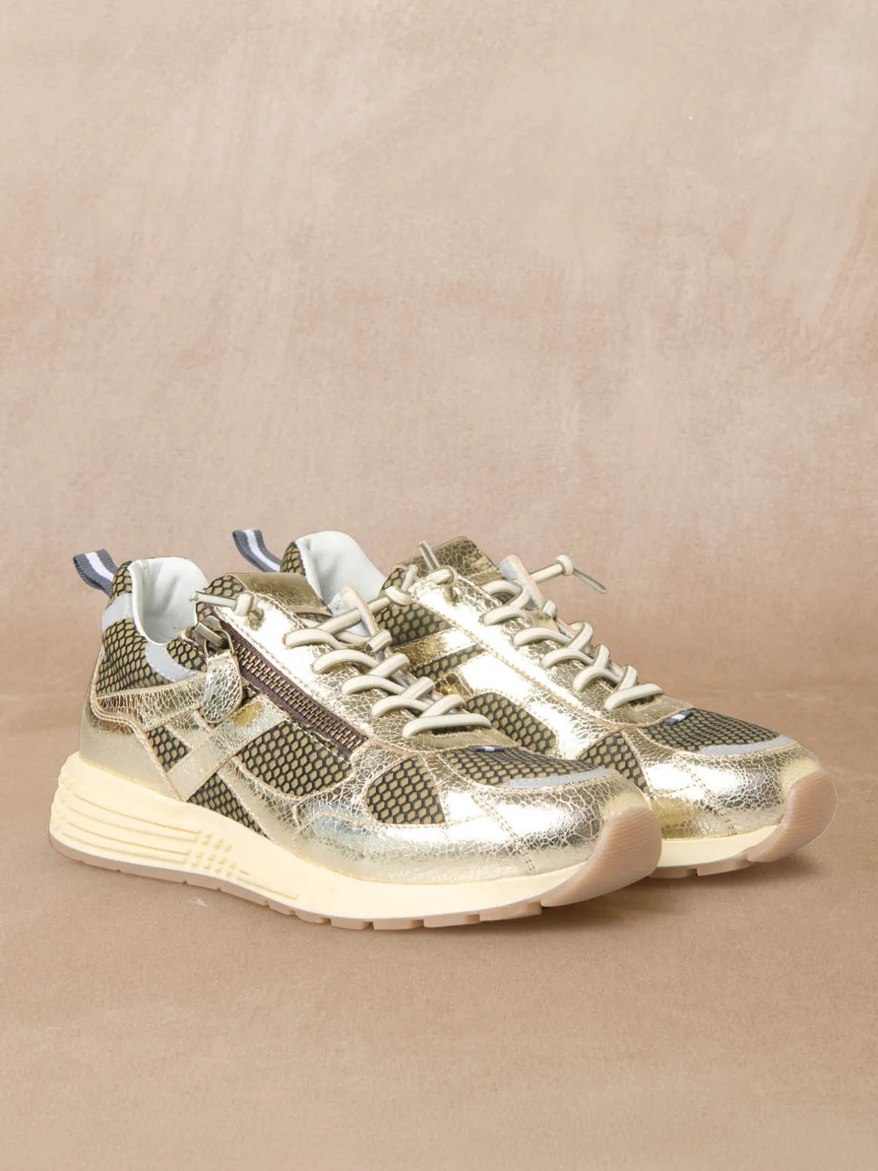 Et si vous aviez la brillante idée d’apporter une touche de peps à votre look ? Alors c’est le moment de chausser ces jolies baskets dorées signées PEDICONFORT®. Zippées, elles s’enfilent en un clin d’oeil.