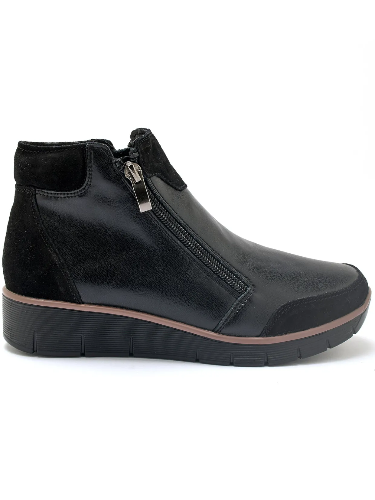 Largeur confort pour ces boots compensées femme, une largeur adaptée aux pieds exigeants souhaitant un confort supérieur.