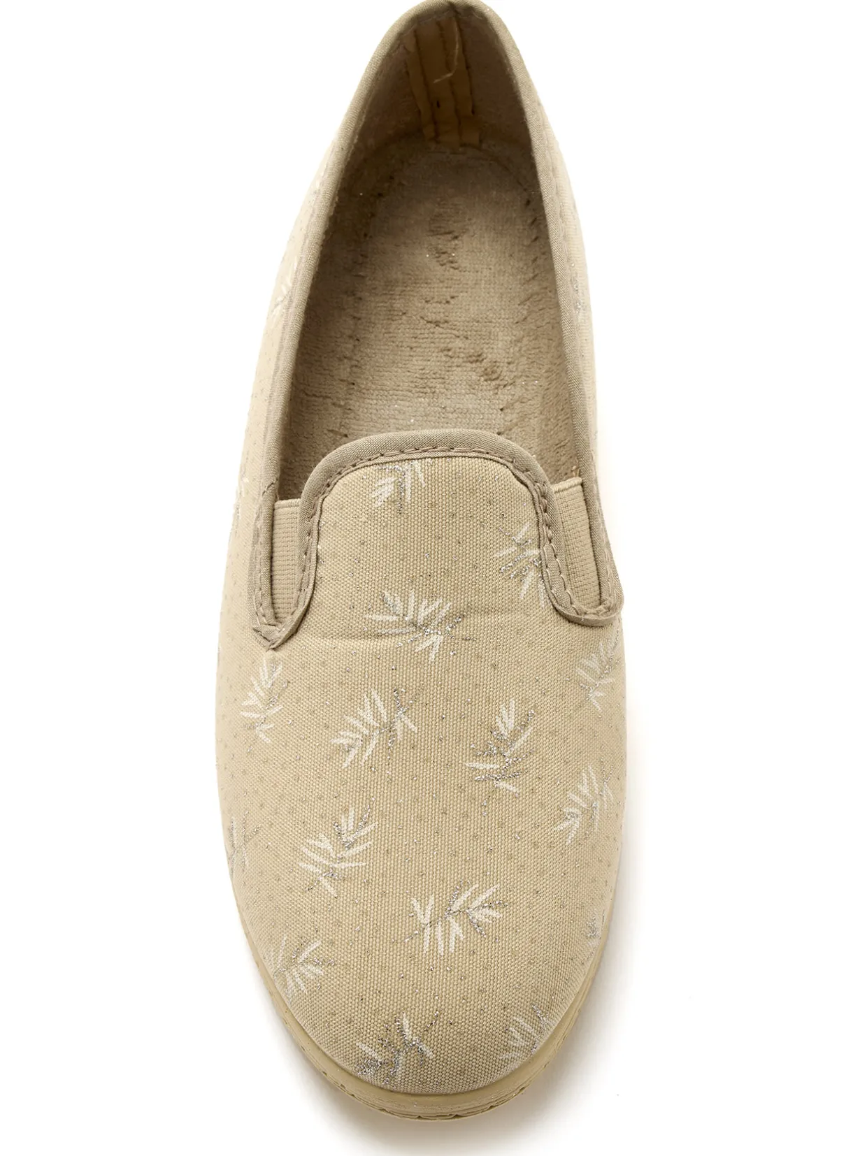 Faciles à enfiler, ces pantoufles sans-gêne grâce à leurs élastiques côtés. Leur dessus textile est personnalisé par un joli imprimé aux motifs feuilles stylisées.