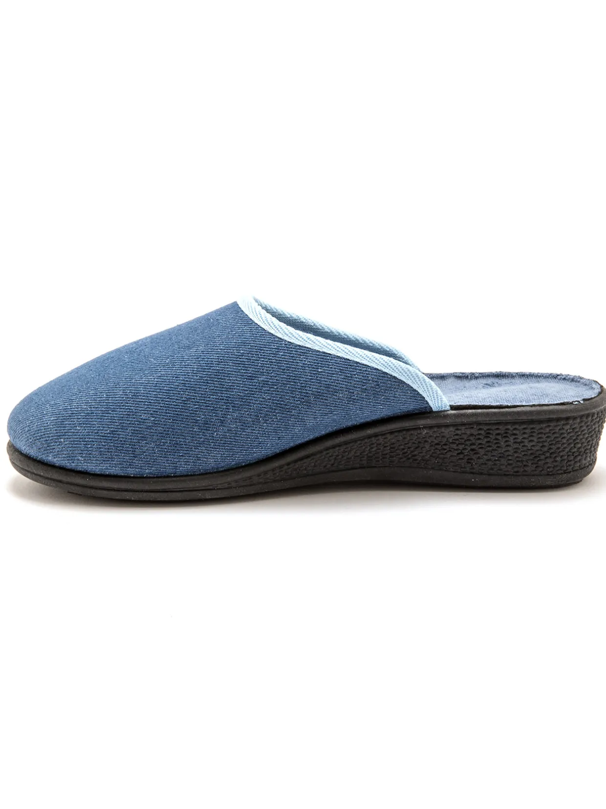Dessus : textile. Doublure et semelle intérieure éponge. Finition biais. Semelle semi-compensée en élastomère.