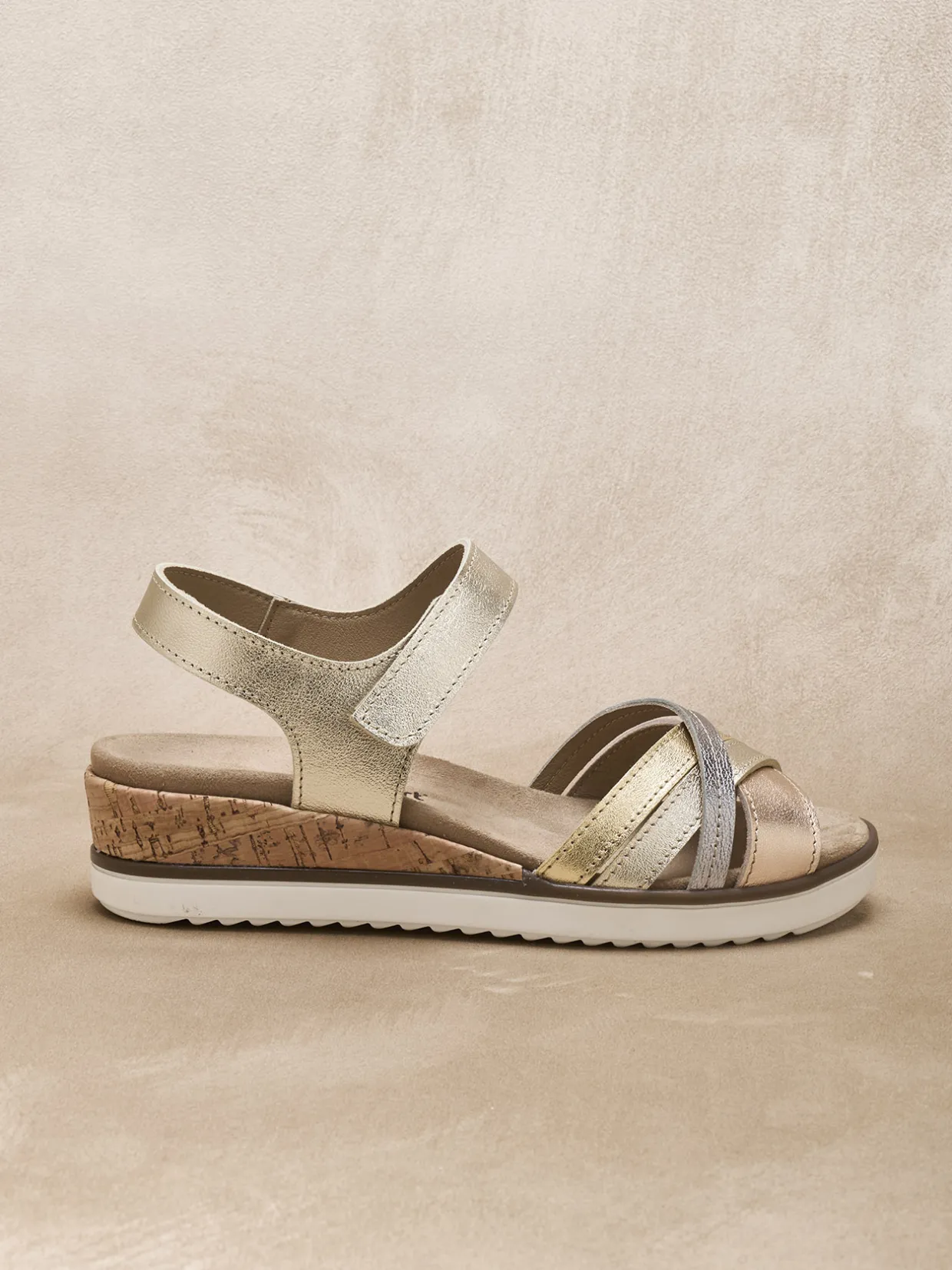 Largeur confort pour ces sandales compensées femme, une largeur étudiée pour offrir un confort supérieur aux pieds plus exigeants.