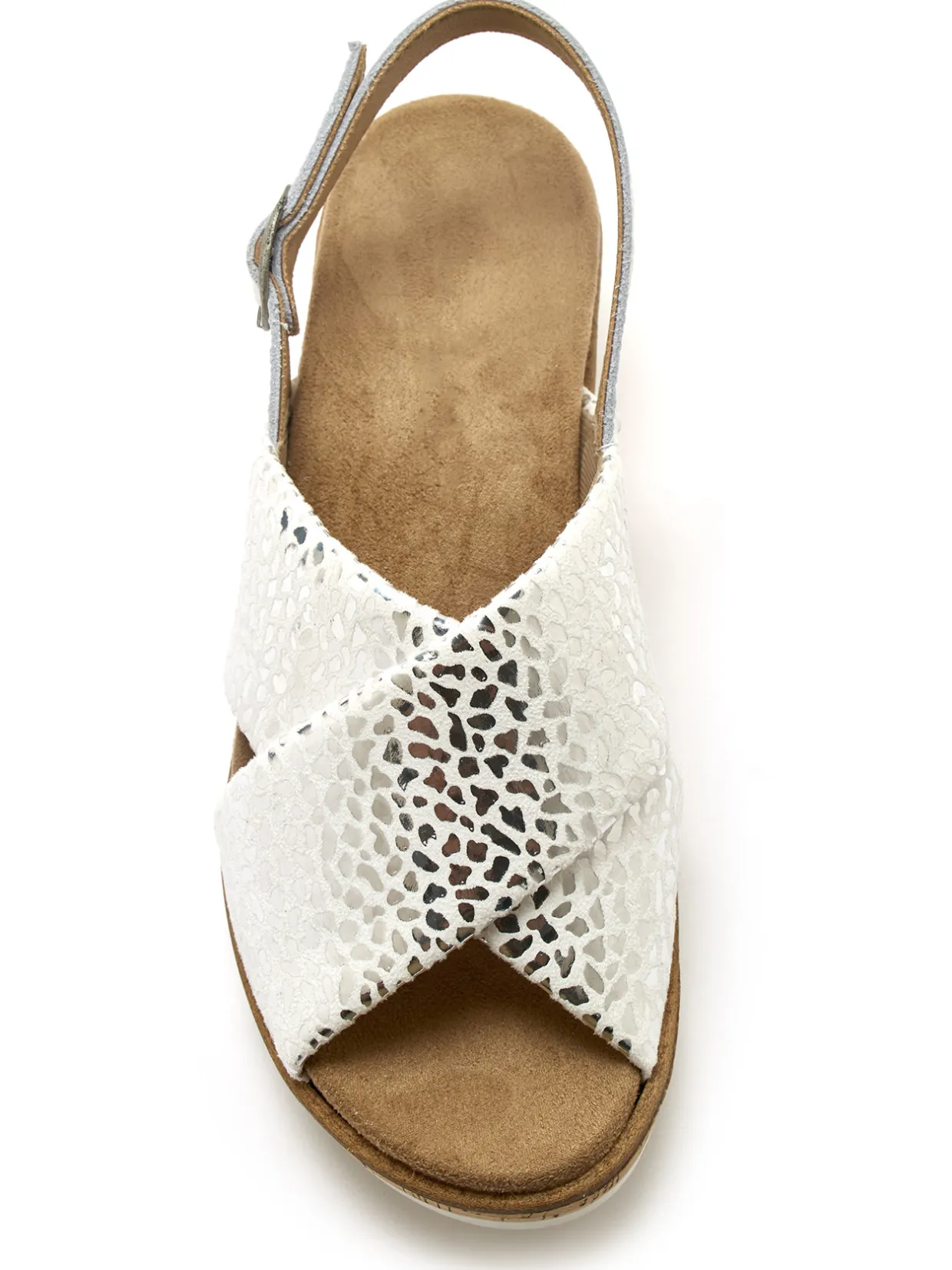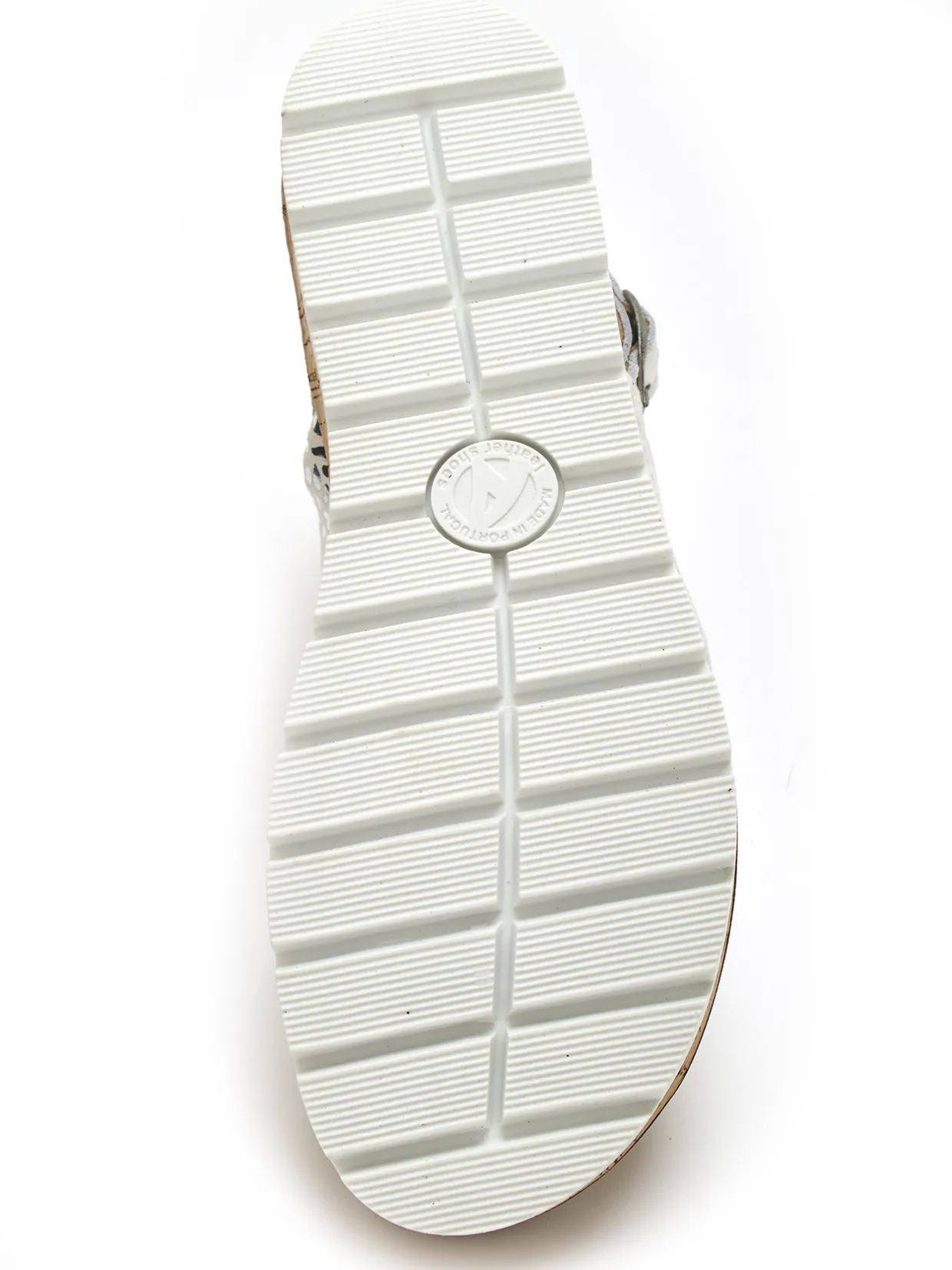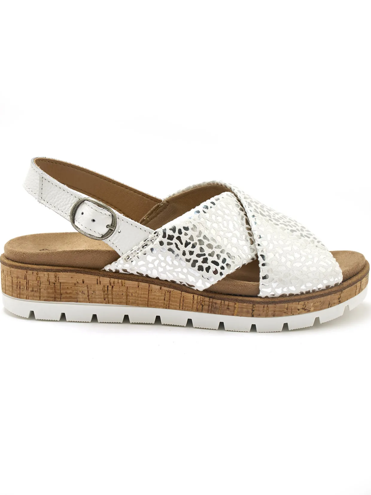 Alliance de confort et de fantaisie pour ces sandales PEDICONFORT®, grâce à leurs lanières croisées très confortables en matière extensible tubulaire, rehaussées de petits motifs brillants.