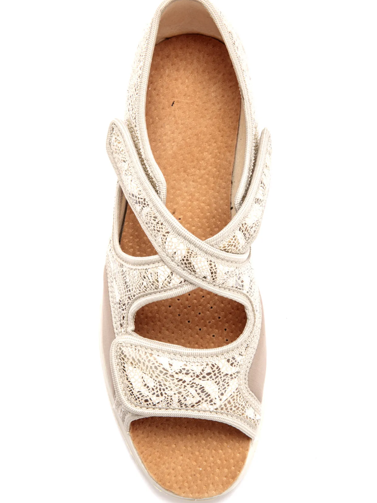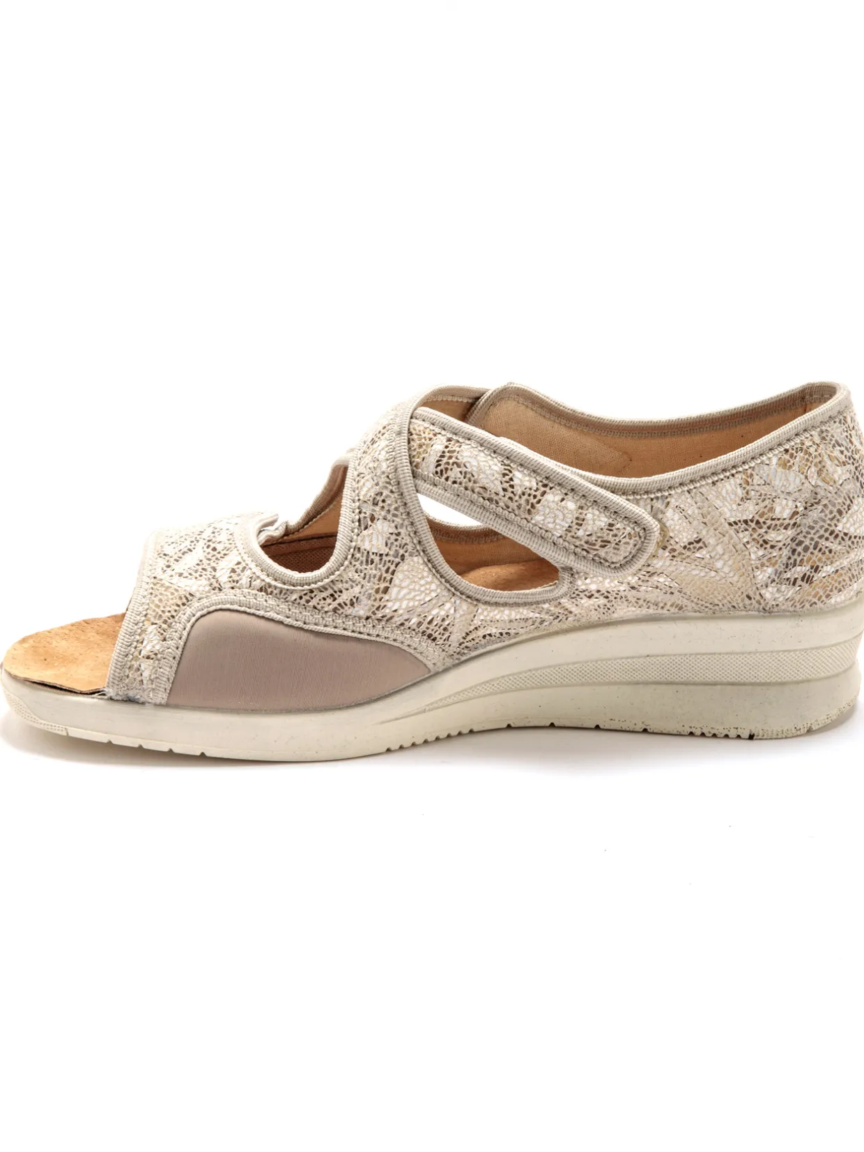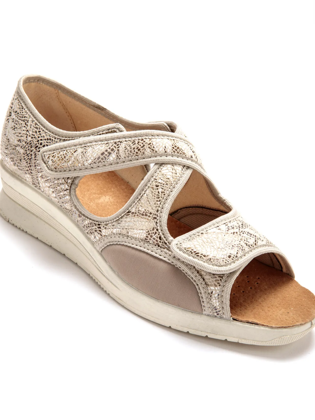 Le dessus est extensible et s’adapte en douceur à la morphologie des pieds les plus sensibles (idéal en cas d’hallux valgus).