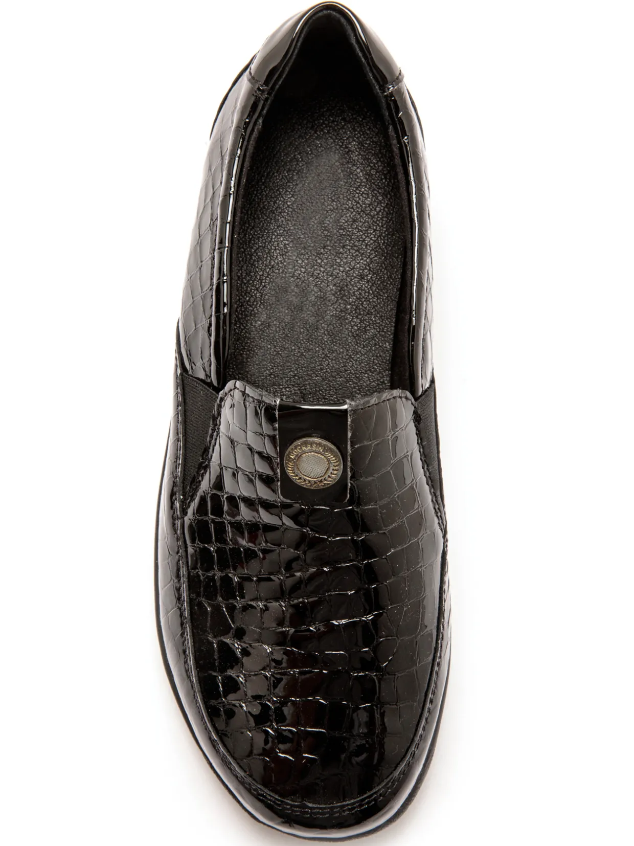 Dessus : cuir verni.