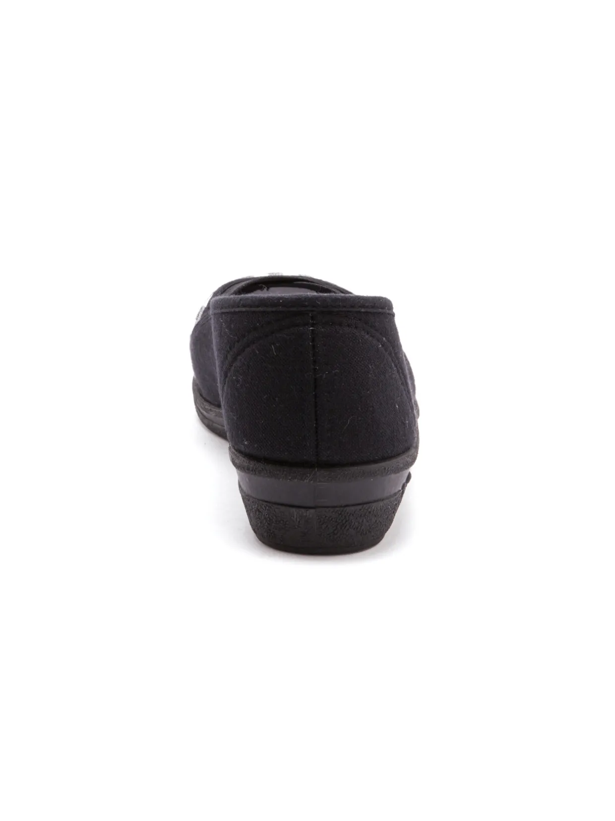 – Talon des pantoufles en toile femme : 2,5 cm environ