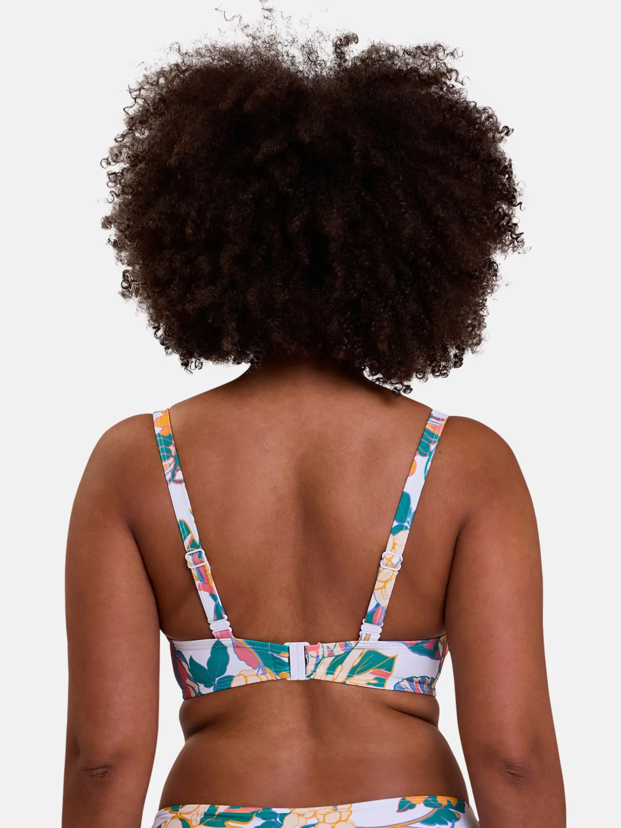 – Son détail noué à l’entre seins et son imprimé tropical assurent un style très tendance