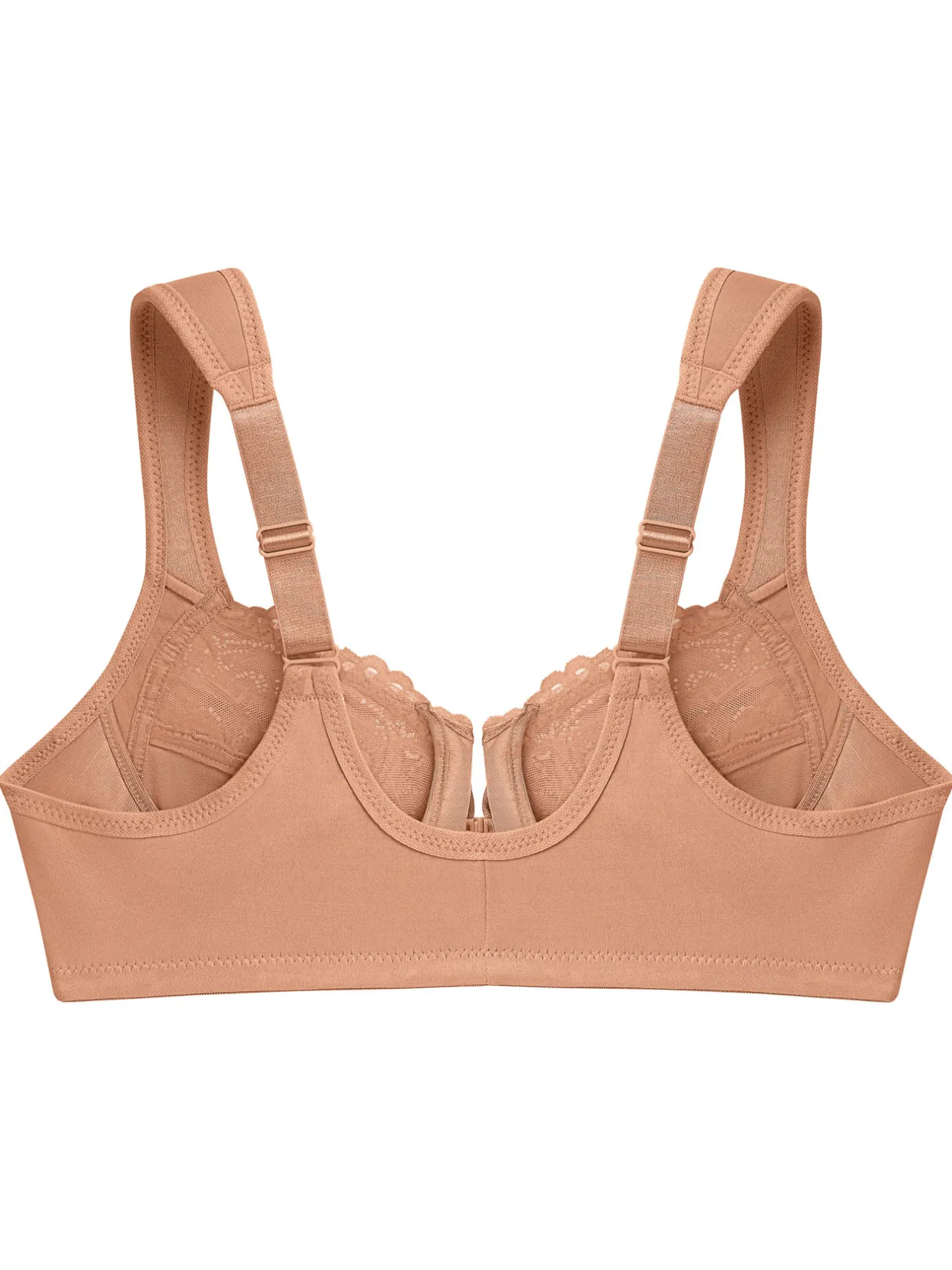 Les bonnets sont ornés de dentelle pour apporter la touche finale à ce modèle élégant et garantir un ajustement parfait. L’armature est enveloppée de trois couches de tissu différentes qui l’empêchent de s’enfoncer dans la peau, mais aussi galbent votre poitrine avec élégance. Le tissu doux et soyeux des bonnets et les larges bretelles réglables prendront soin de vous tout au long de la journée. Effet et sensation de bien-être garantis ! Spécial grand maintien et parfait pour les grandes tailles.