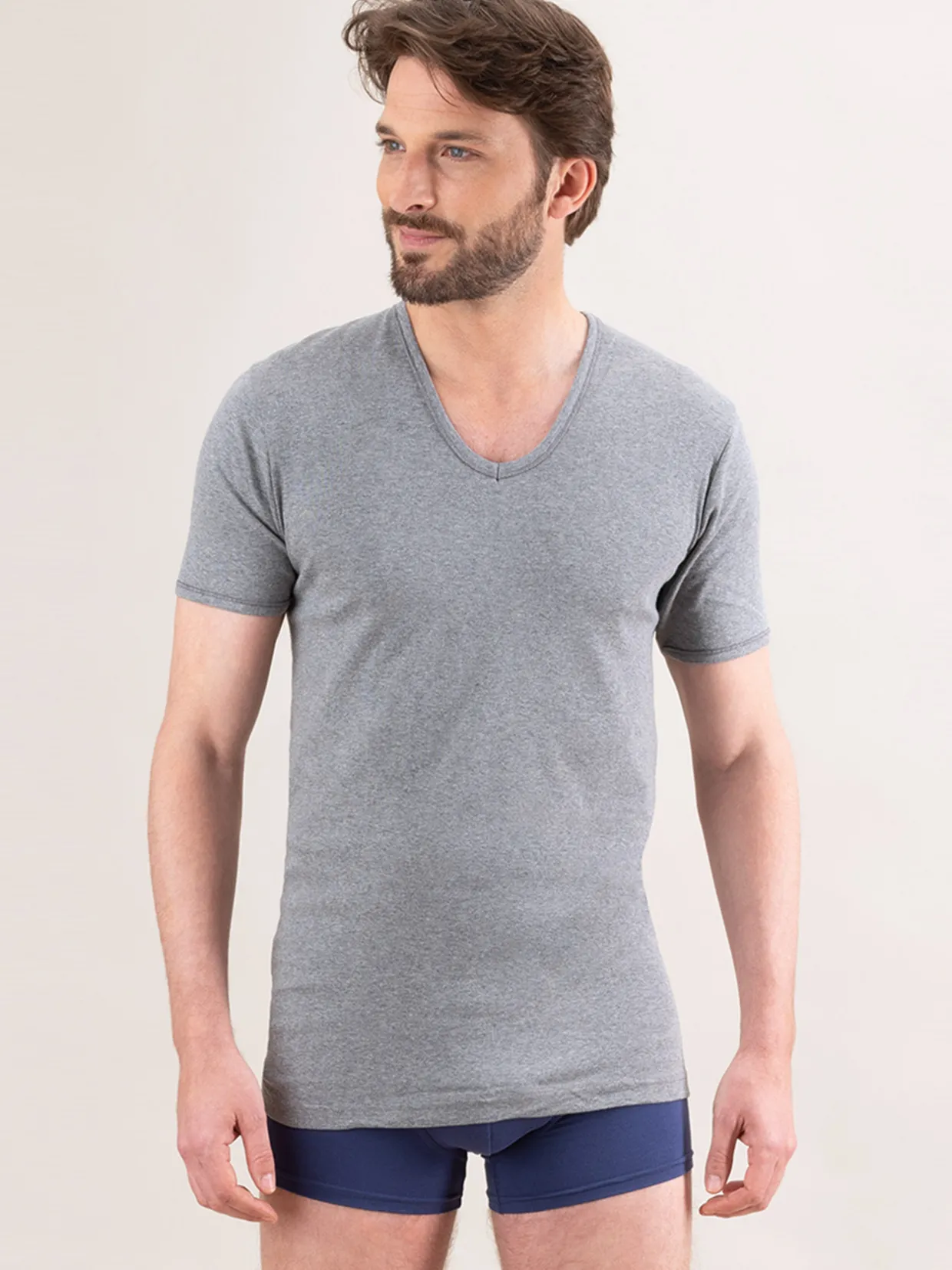 Lot de 2 maillots de corps Eminence col V, manches courtes. Le confort d’un pur coton peigné pour ces indispensables du quotidien.