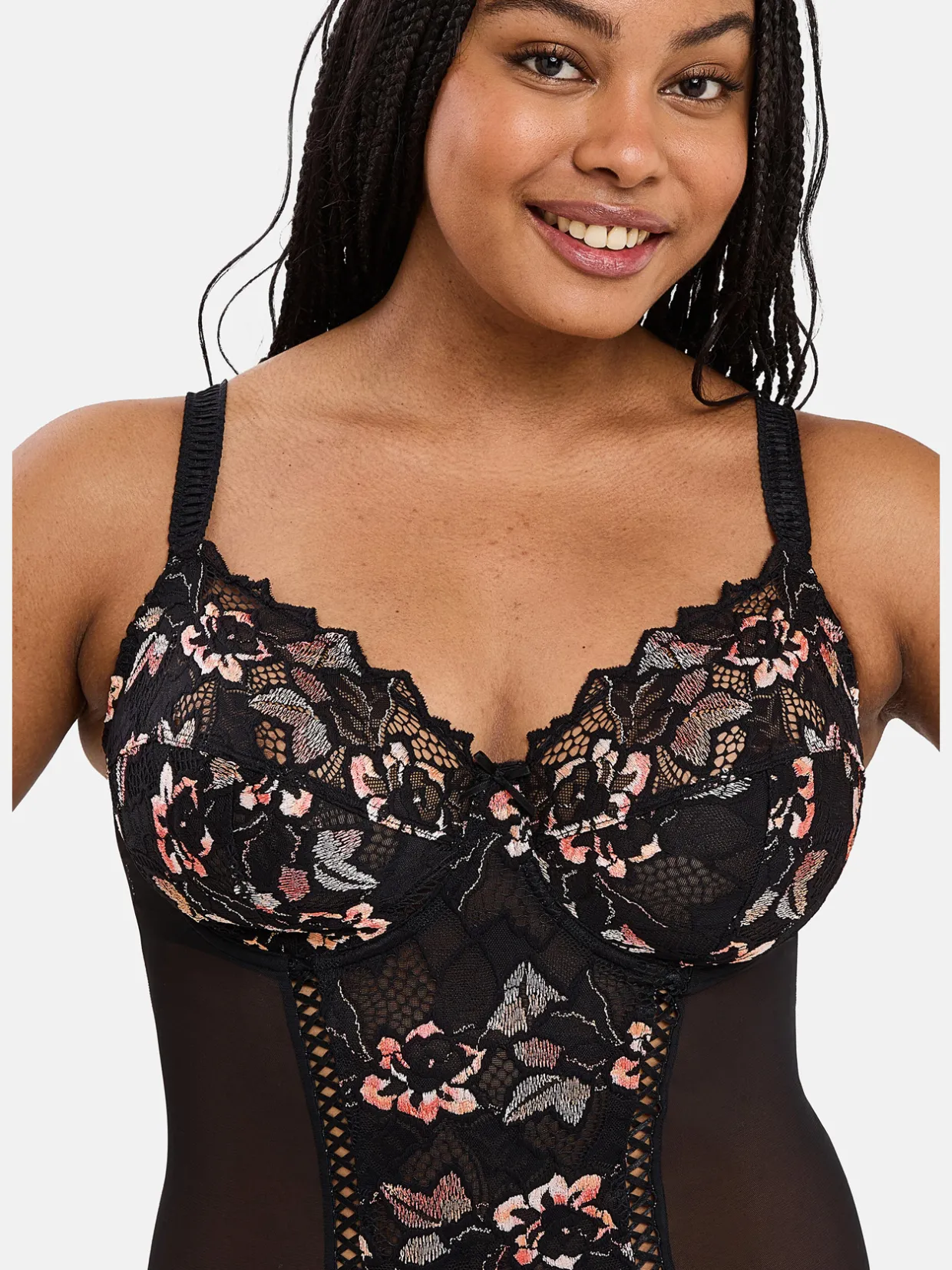 Ce body avec armatures Arum Cabaret SANS COMPLEXE se compose de bonnets construits en 3 parties, doublés de tulle rigide, pour apporter un maintien optimal tout en étant très confortable.