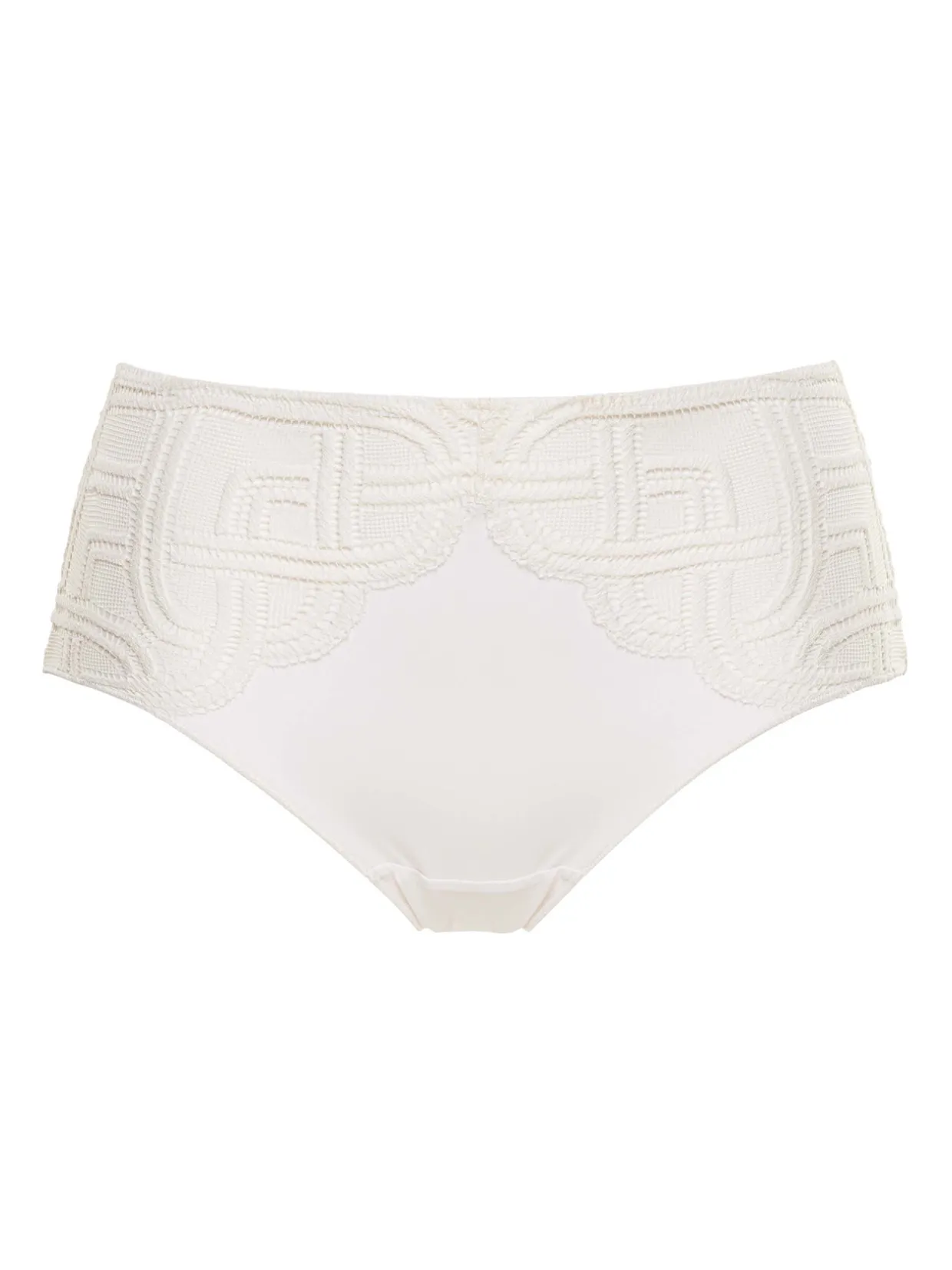 Place au confort avec cette culotte SANS COMPLEXE couvrante. La dentelle textronic et la microfibre en polyamide recyclée sont l’accord parfait entre confort et élégance.