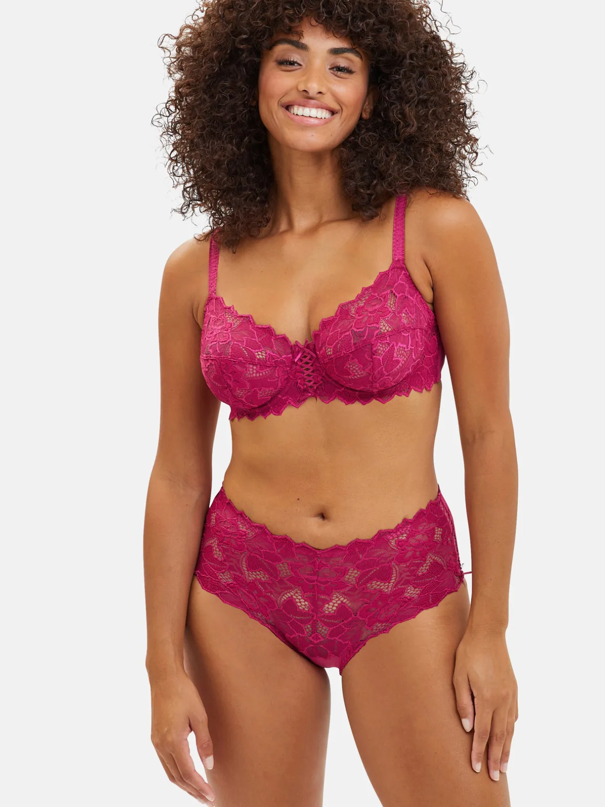 Dentelle 92% polyamide, 8% élasthanne. Tissu 83% polyamide, 17% élasthanne. Doublure fond 100% coton